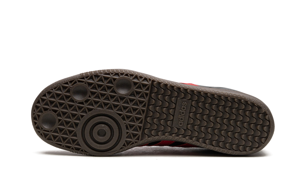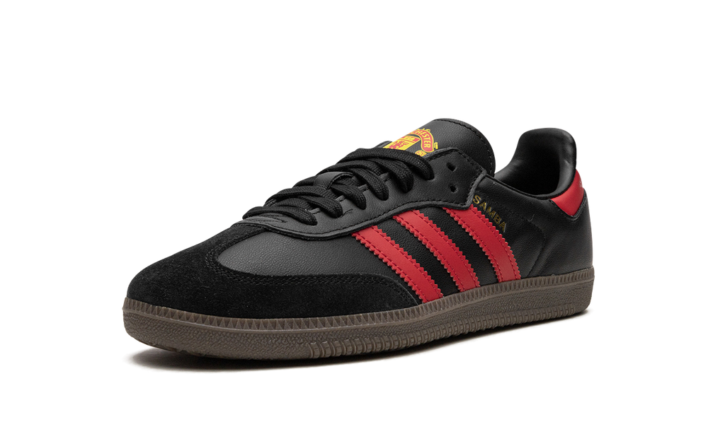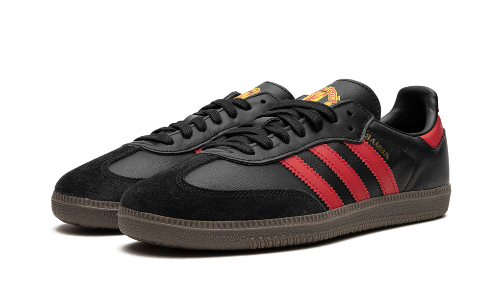 The adidas Samba “Manchester United” is a special colorway of the iconic sneaker for fans of the storied soccer club. Manchester United’s colors and branding found on its kits are applied to the adidas Samba to great success. The shoe is complete with a black leather base with red leather Three Stripes detailing on the sides. Additional red leather can be found on the heel. A “Manchester United” graphic is located on the tongue. A dark gum rubber sole completes the look.