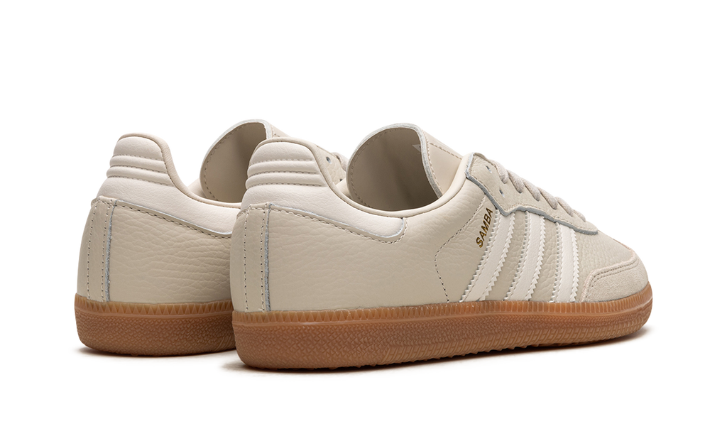 The Women’s adidas Samba OG “Beige/White/Gum” is a women’s-exclusive colorway of the retro indoor soccer shoe with neutral colors. The upper features a beige leather base that’s paired with white leather Three Stripes and “Samba” branding on the side. A tonal suede overlay appears on the toe while a white leather heel tab breaks up the look on the back of the shoe. An old school “adidas” logo on the tongue ties into the Samba’s vintage look. A gum rubber sole completes the clean and versatile colorway.