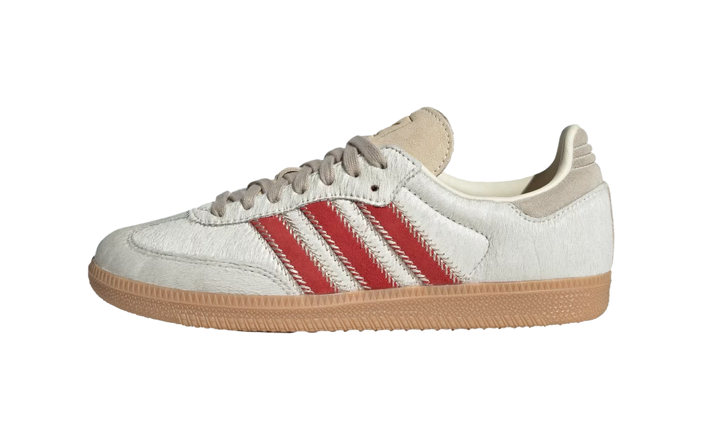 Elevate your style with the stunning ADIDAS Samba OG WMNS "Wonder Beige Cream White," known as the "Wonder Beige Cream White." This women's exclusive features the beloved low-profile Samba silhouette in a chic, neutral colorway. The premium leather and suede upper blend sophisticated beige and cream white tones, ensuring versatility for any outfit. Finished with the signature gum rubber outsole for classic appeal and traction, this Samba iteration is the perfect blend of heritage design and modern, effortless elegance.