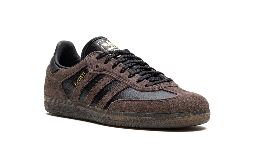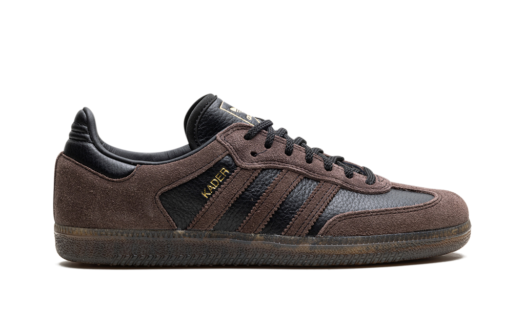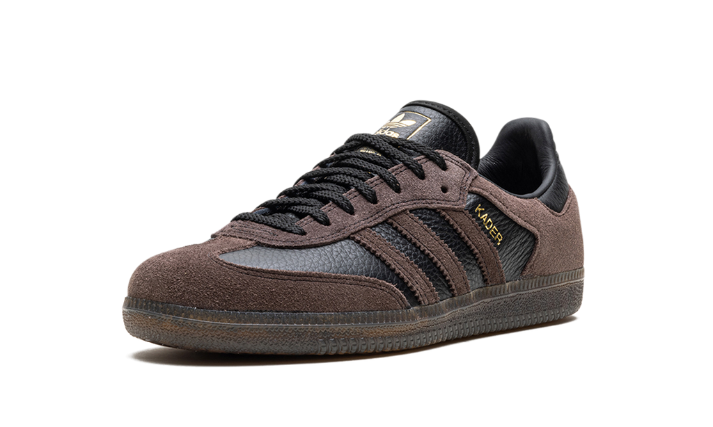 The adidas Samba ADV "Kader Sylla" is a collaboration between the professional skateboarder and adidas on a skate-ready version of the retro shoe. Modified specifically for skateboarding, the Samba ADV for Kader features a black tumbled leather base with brown suede overlays on the forefoot and heel, as well as on the Three Stripes branding. A “Kader” logo appears in gold foil next to the Three Stripes on the lateral side of the shoe. Underfoot, the gum rubber sole provides traction for optimal board feel or casual daily wear. Release date: February 10, 2024