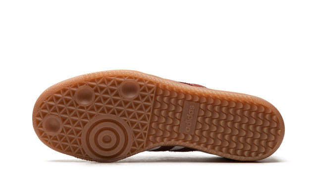 The Sporty & Rich x adidas Samba “Burgundy” is a collaboration by Emily Oberg’s sportswear brand on a colorway of the classic sneaker with burgundy details. The adidas Samba “Burgundy” by Sporty & Rich features a white leather base with a tan suede overlay on the toe. A Core Burgundy suede Three Stripes logo appears on the side, as does gold “Sporty and Rich” branding. Dual “adidas” and “Sporty and Rich” detailing is found on the Core Burgundy suede heel tab. Classic adidas Samba branding appears on the tongue. A gum rubber sole completes the look.