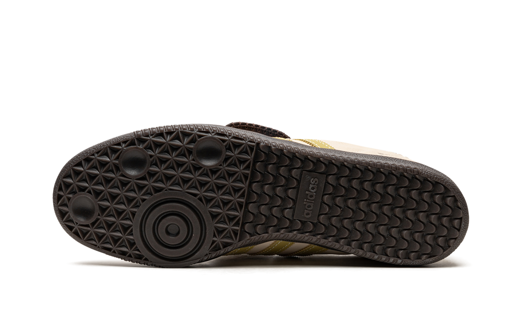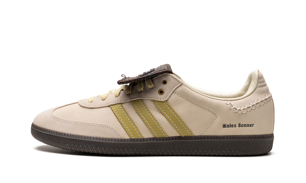 The Wales Bonner x adidas Samba “Cream/Yellow” is a collaboration between the fashion designer and adidas on the popular sneaker that shows appreciation for the model’s soccer heritage. One of several colorways of the adidas Samba by Grace Wales Bonner, this edition features a light brown leather construction with tonal suede on the toe. A mustard-like shade of yellow appears on the leather Three Stripes on the sides and a “Wales Bonner” logo is found on the lateral side of the heel. The shoe’s fold-over tongue is an acknowledgment to the Samba’s original appearance. A dark gum rubber sole completes the look.