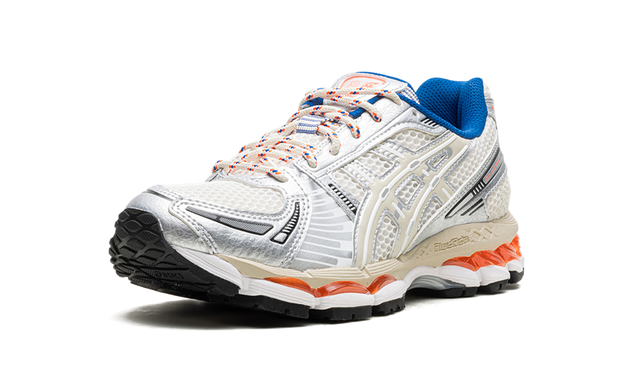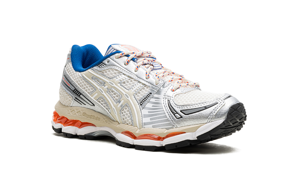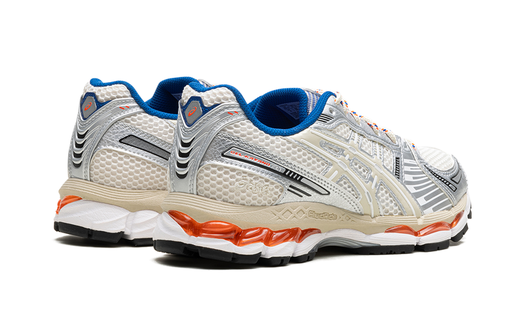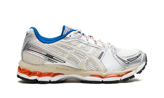 The Ronnie Fieg x ASICS Gel-Kayano 12.1 “Cream” is a collaboration by the Kith founder and ASICS on a shoe that blends the ASICS Gel-Kayano 12 and ASICS Gel-Nimbus 17. The ASICS Gel-Kayano 12.1 by Fieg merges the Gel-Kayano 12’s upper with the Gel-Nimbus 17’s outsole to create a new-yet-familiar design. On the “Cream” colorway, the shoe features a Cream open-mesh construction with flashy Metallic Silver synthetic leather overlays and Cream ASICS “tiger” stripes. “Gel-Kayano 12.1” branding appears on the lateral side of the heel in orange text. The inner lining is finished in blue, while white, blue, and orange speckled laces pop against the shoe’s neutral-colored base. Underfoot, Cream FluidRide cushioning technology combines with orange-colored Gel cushioning inserts in the heel and forefoot to provide the wearer with all-day comfort. Ronnie Fieg - Cream