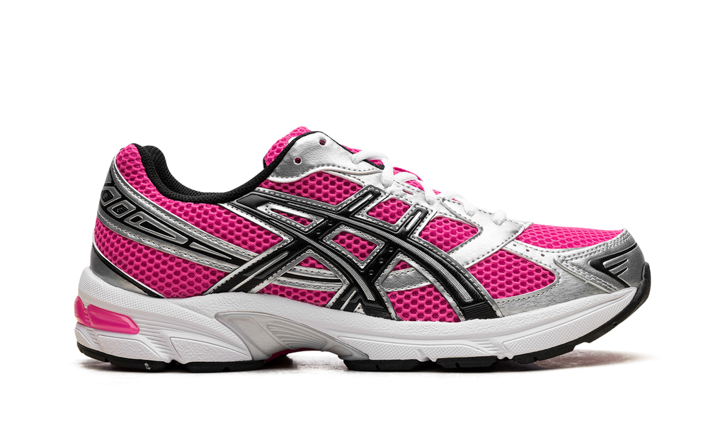 The Asics Gel-1130 "Wanda" is a vibrant version of the classic running sneaker inspired by the Nickelodeon cartoon, The Fairly OddParents. The "Wanda" 1130 places bright pink mesh beneath the black and silver cage for a high-contrast design.