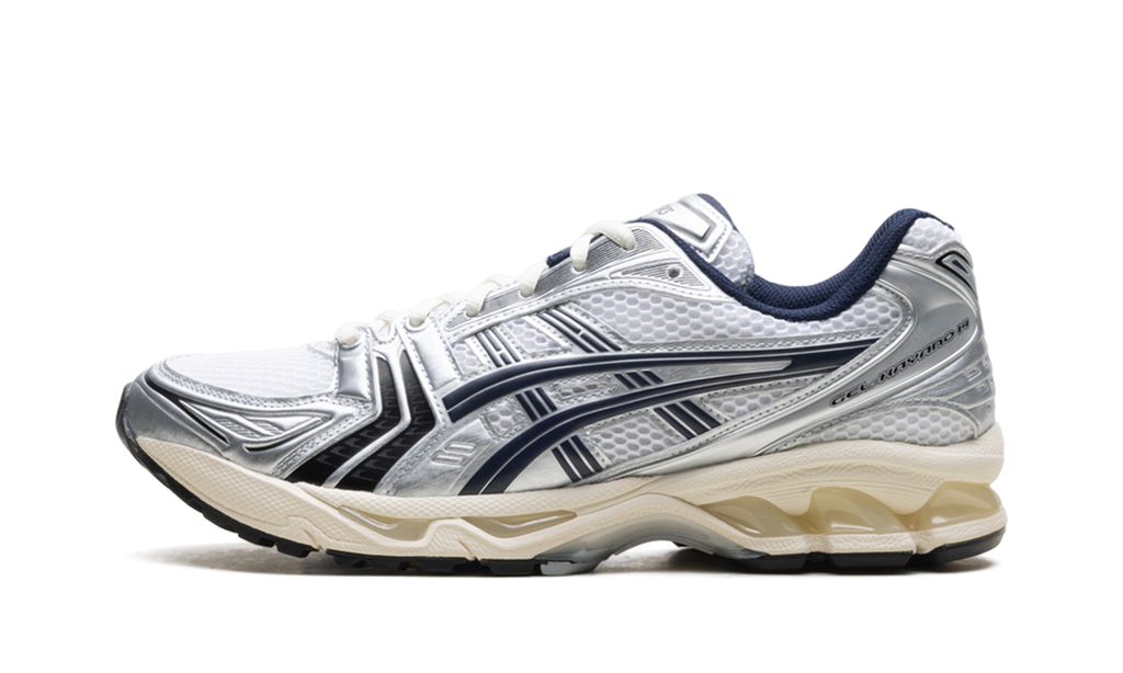 Secure a piece of minimalist sneaker history with the ASICS GEL-KAYANO 14 JJJJound "White/Navy." This exclusive collaboration applies JJJJound's signature understated aesthetic to the late-2000s runner, combining a crisp white mesh base with metallic silver overlays and rich Midnight Navy accents. It features subtle co-branding, the supportive TRUSSTIC™ arch, and powerful GEL™ technology cushioning, delivering essential stability and timeless style.