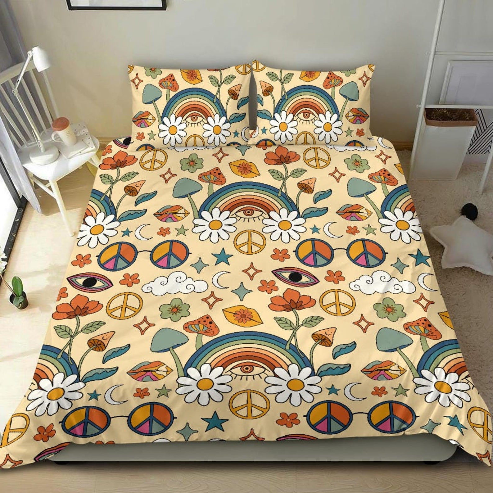 Brighten up your space with our Boho Duvet Cover, a vibrant addition to any bedroom. Featuring a playful rainbow design, this duvet cover is available in Full, Queen, King and Twin sizes, and is perfect for adding a touch of hippie charm to your décor. Made from soft, high-quality fabric, it offers both comfort and durability. Whether you’re refreshing your bedding or creating a bohemian haven, this duvet cover and matching set will infuse your room with color and joy.
