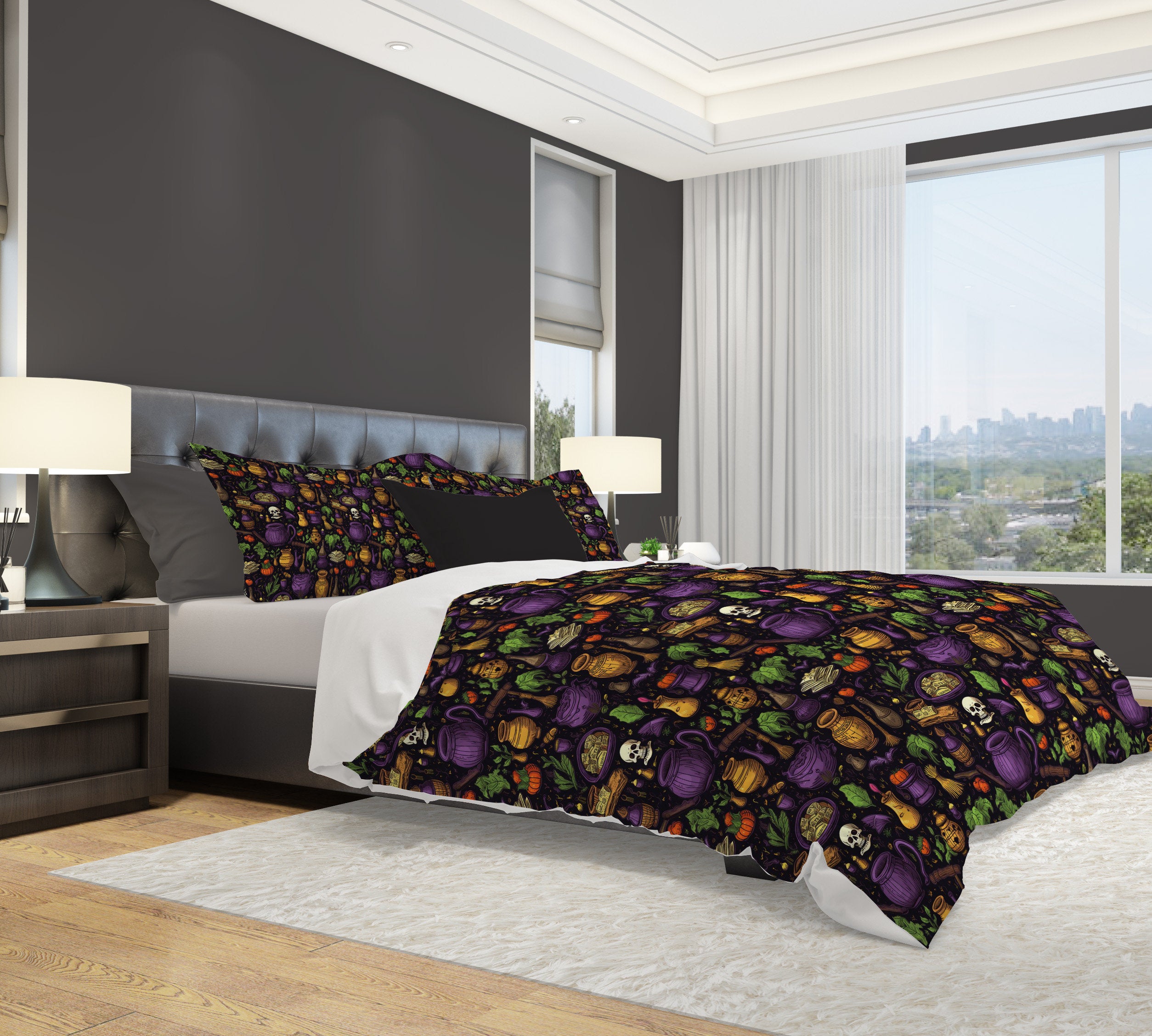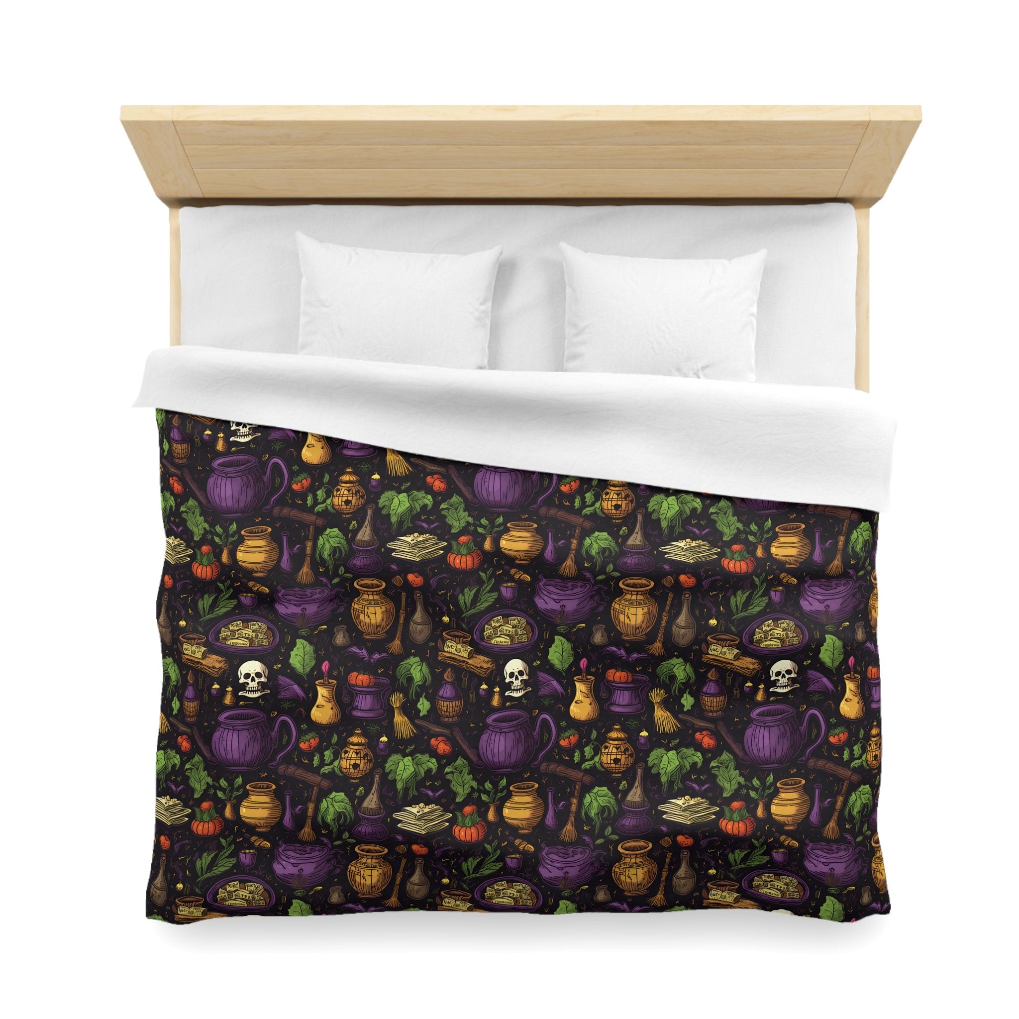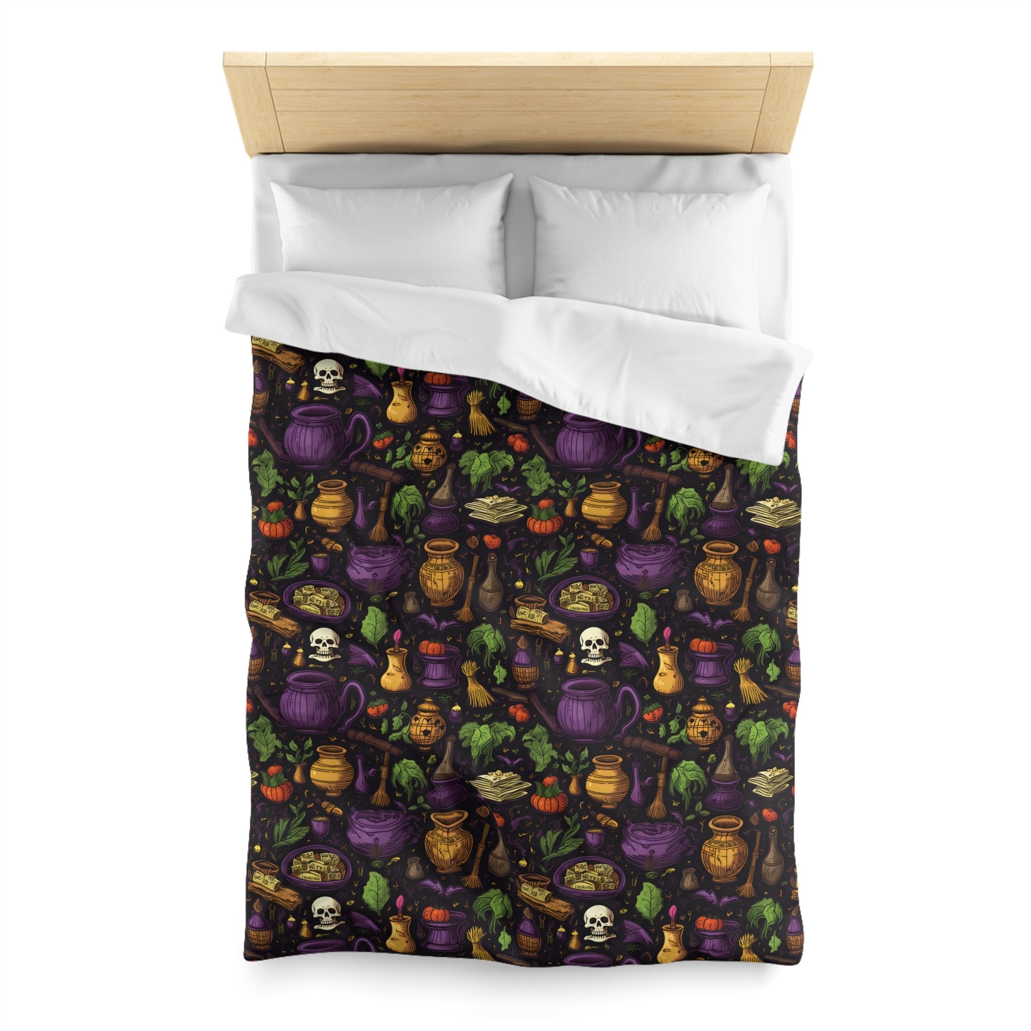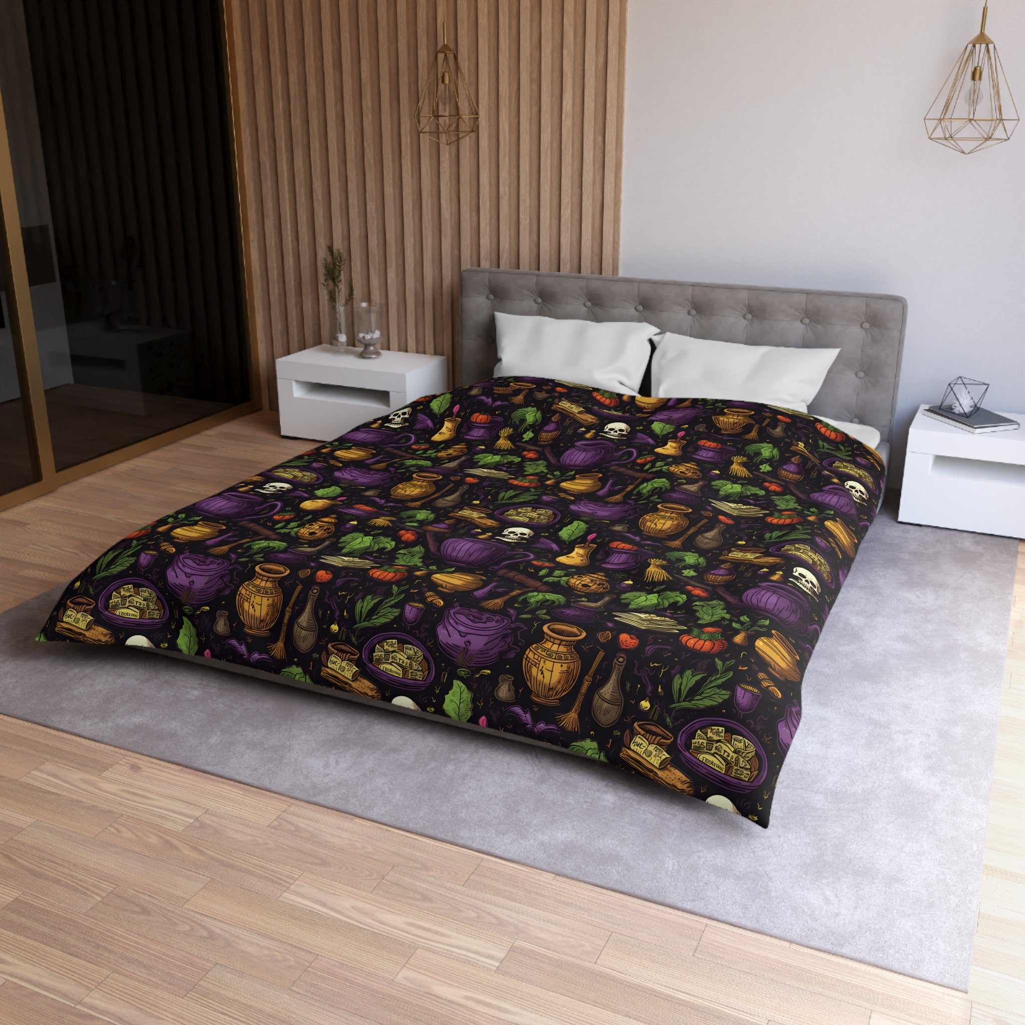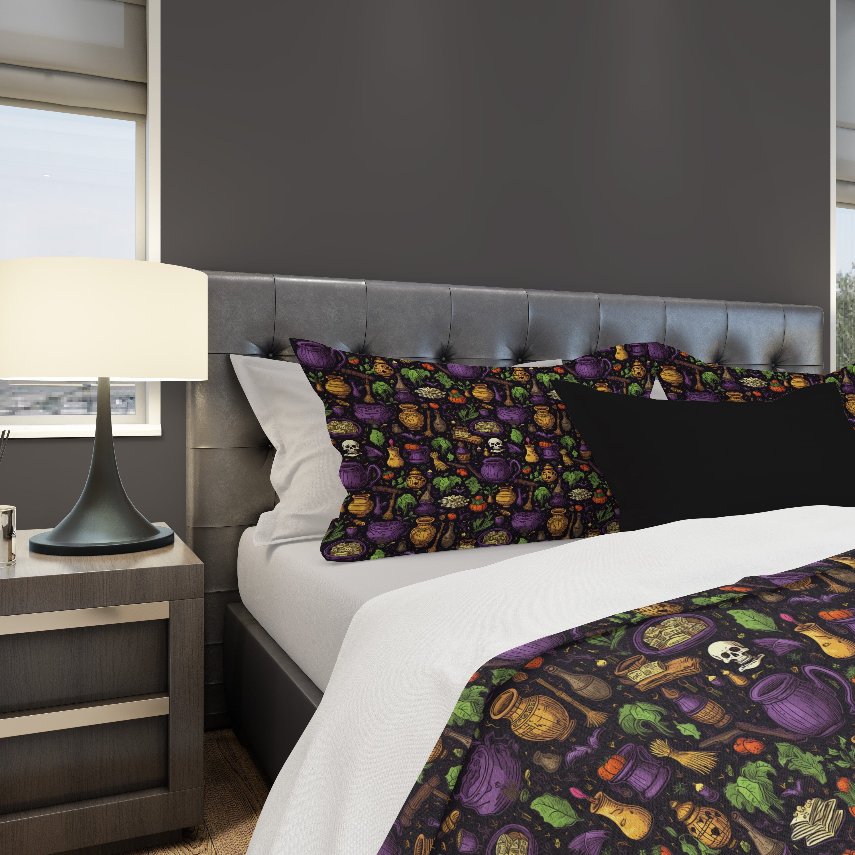 Immerse yourself in a world of mystical allure with the Emerald Blossoms Hallows' Eve Spell Bedding Set. This witchy gothic collection features dark, enchanting floral patterns with a rich emerald hue, perfect for those who revel in a bohemian and occult-inspired aesthetic. Ideal for creating a spellbinding, cozy retreat, it combines mystical charm with an elegant, hippie touch.
