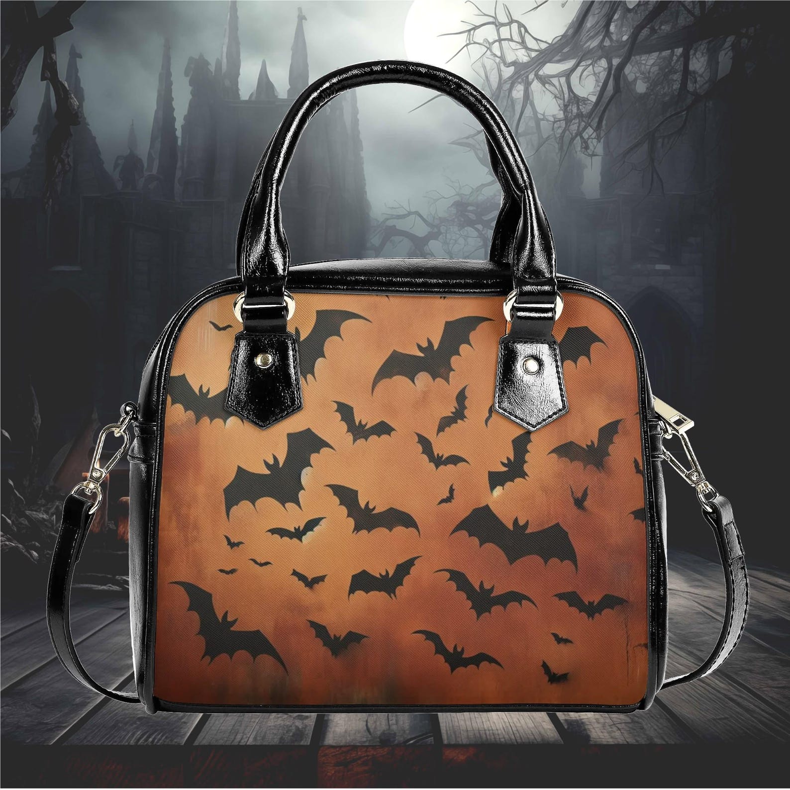 Removable and adjustable brown Vegan leather shoulder strap.