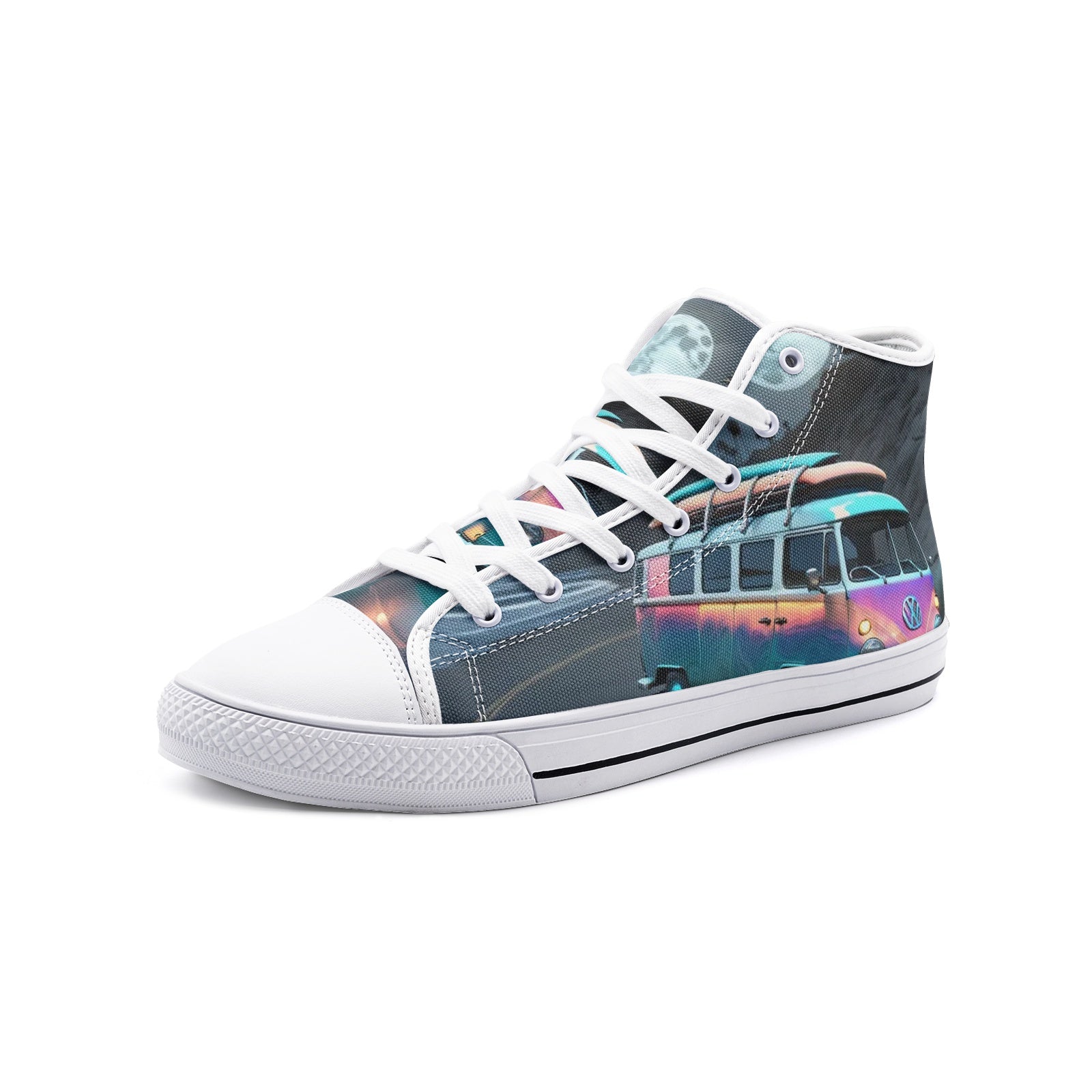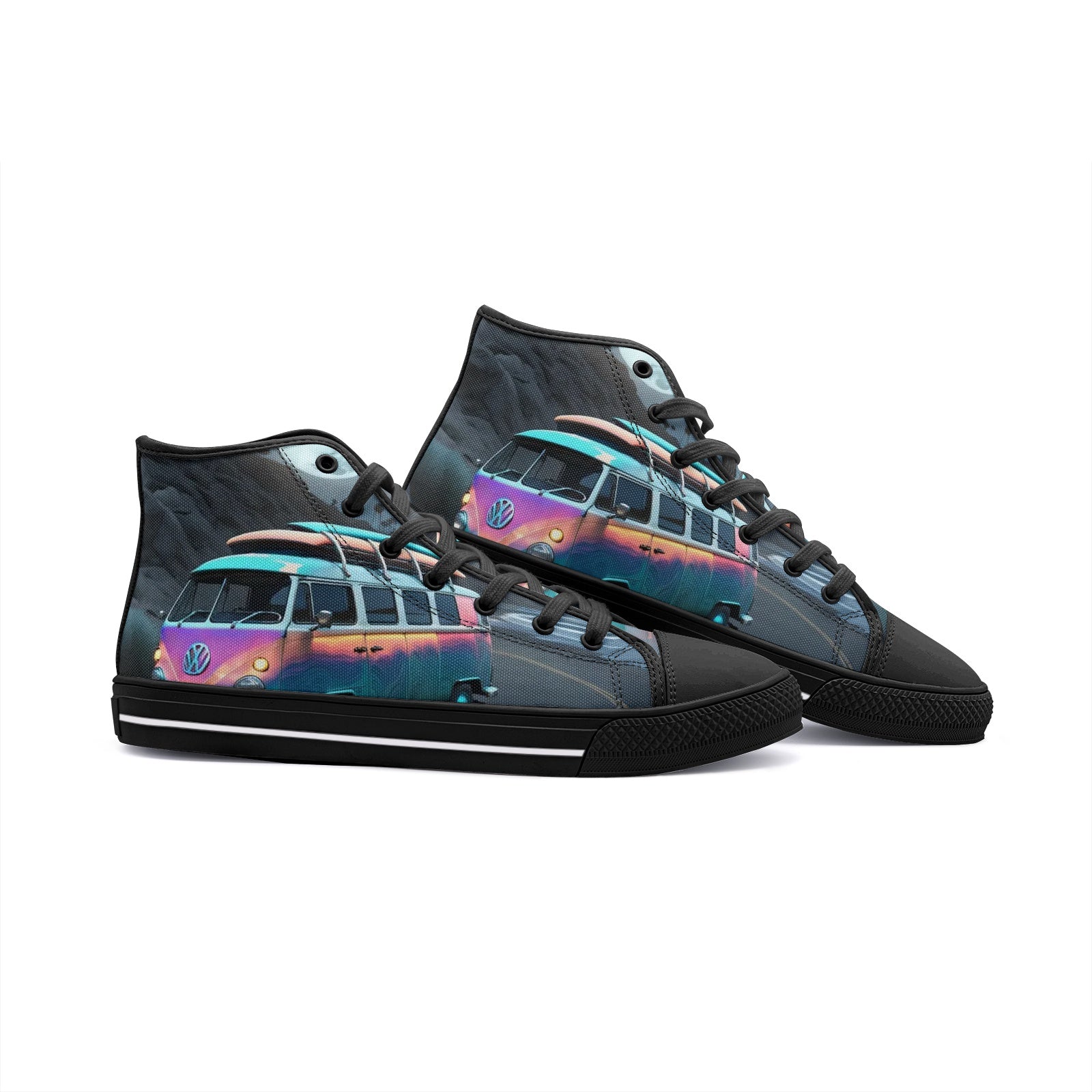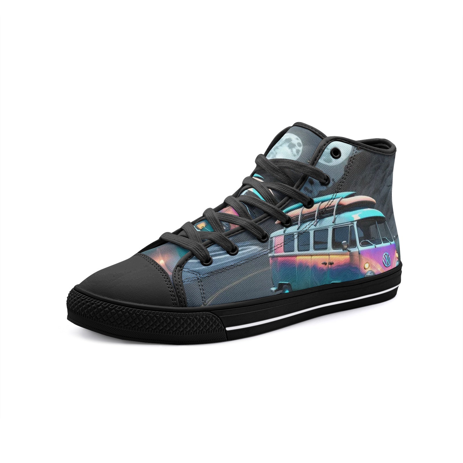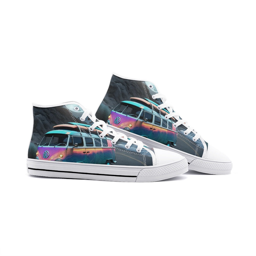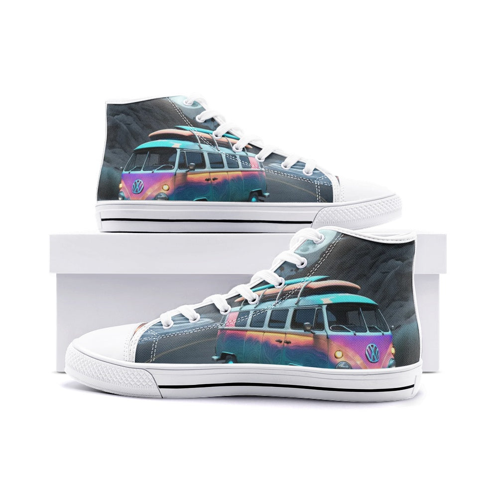 Hit the road in style with the Emerald Blossoms Road Trip Along Nature Canvas High Top. Designed for the free-spirited, these unisex sneakers feature a vibrant nature-inspired print that captures the essence of adventure and discovery. Perfect for those who live for road trips and outdoor adventures, these shoes are both comfortable and a little bohemian. Embark on your next adventure in shoes as adventurous as you are!