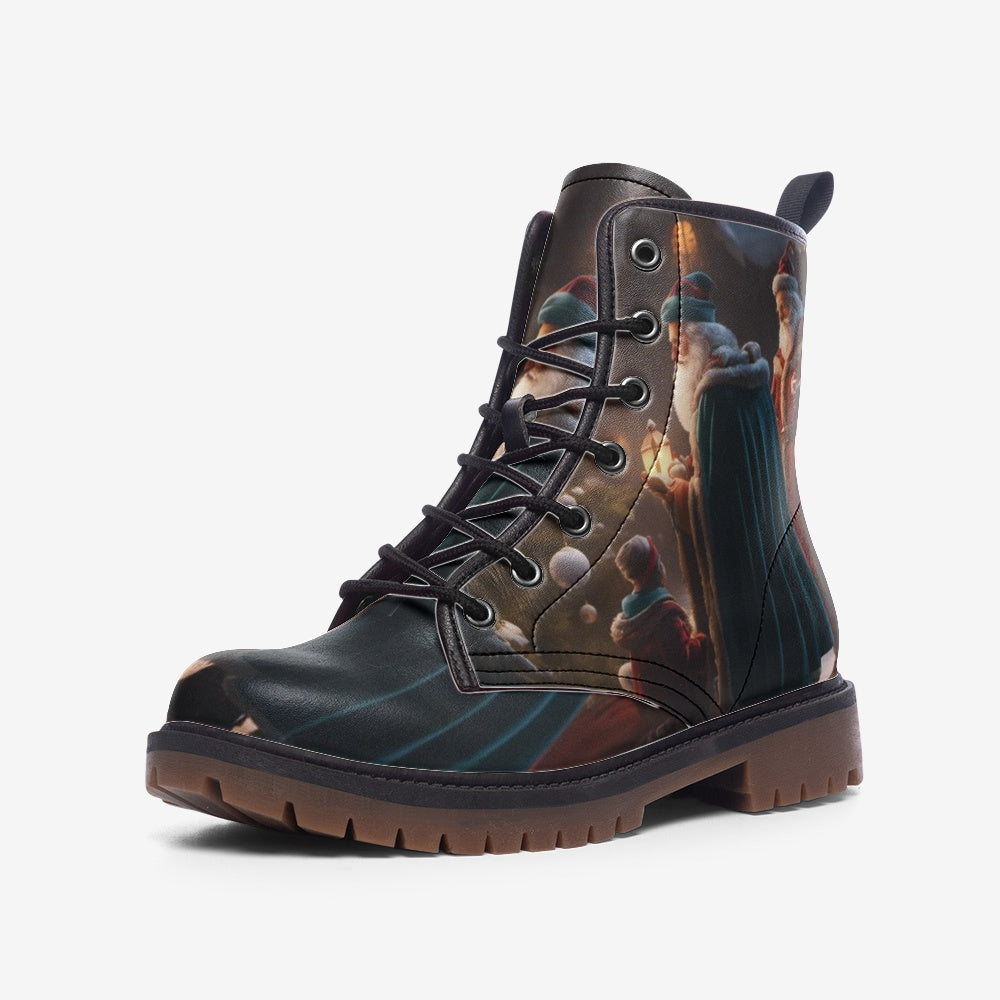 Emerald Blossoms - Dawn In Up Snowy Village, Christmas Holiday Casual Leather Lightweight Boots For Holiday Season