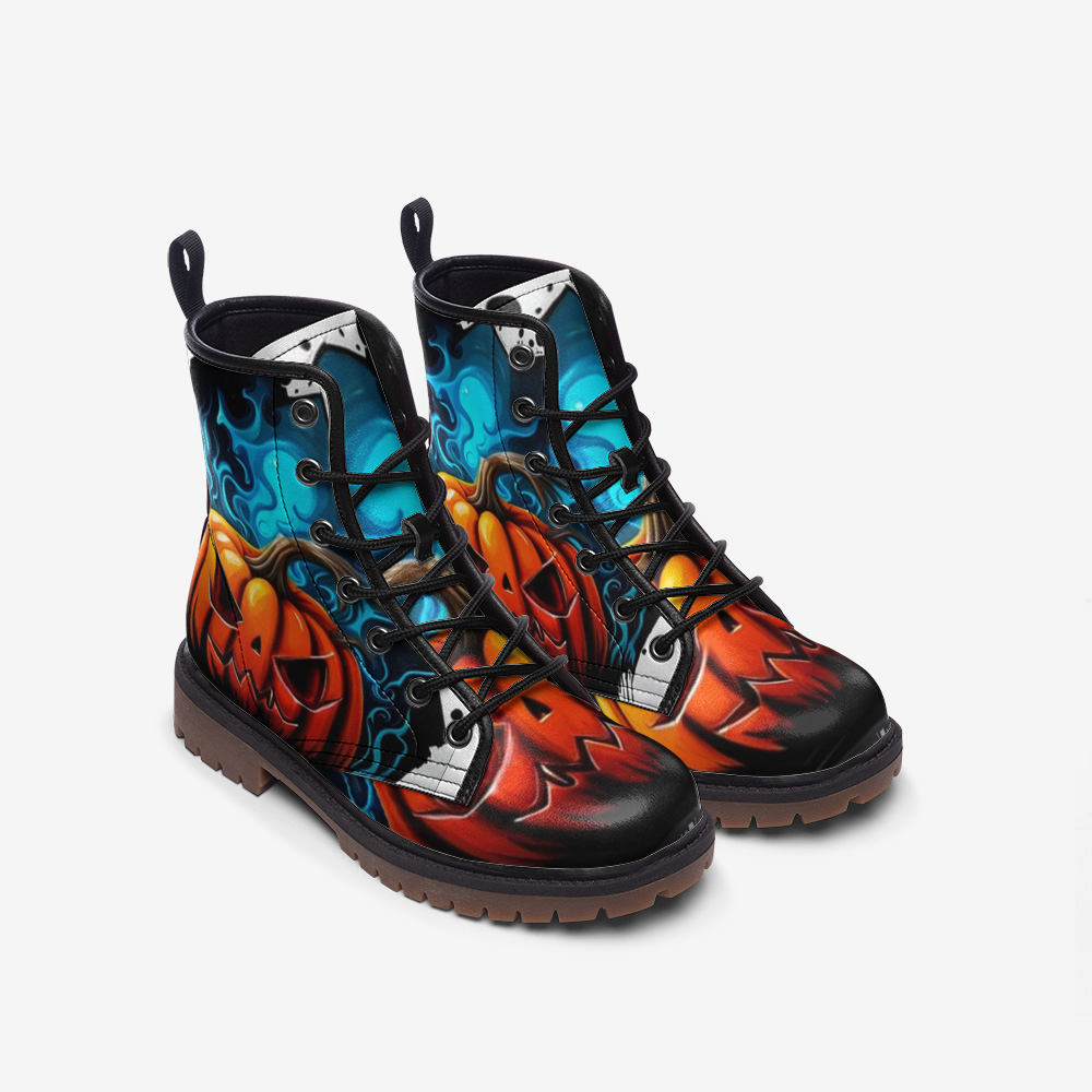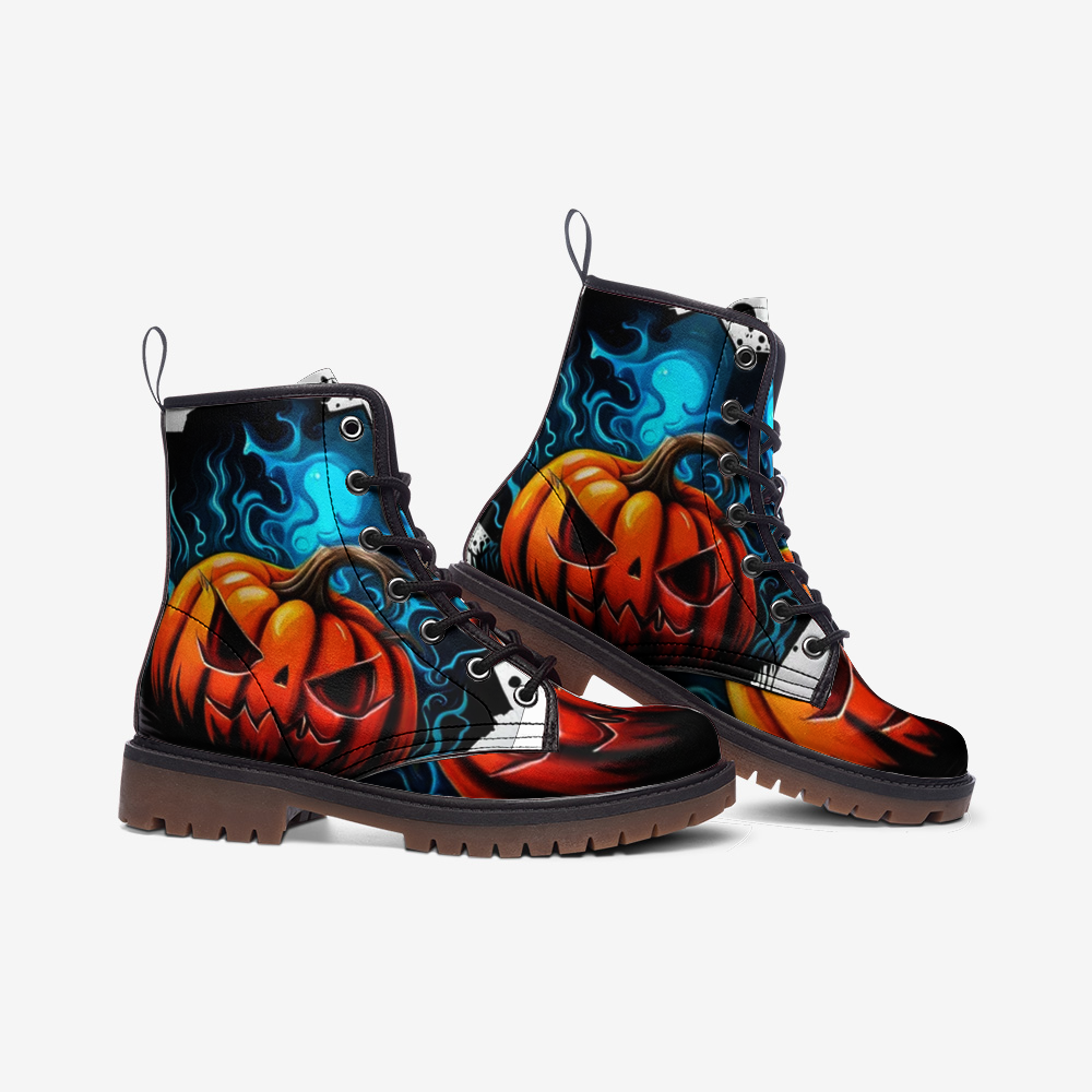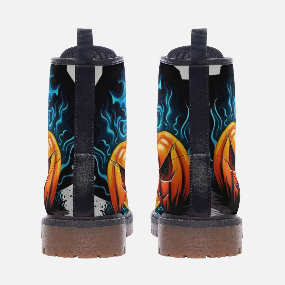 Emerald Blossoms - Autumn Fall Aesthetic Halloween Pumpkin Casual Leather Lightweight Boots For Festive Season
