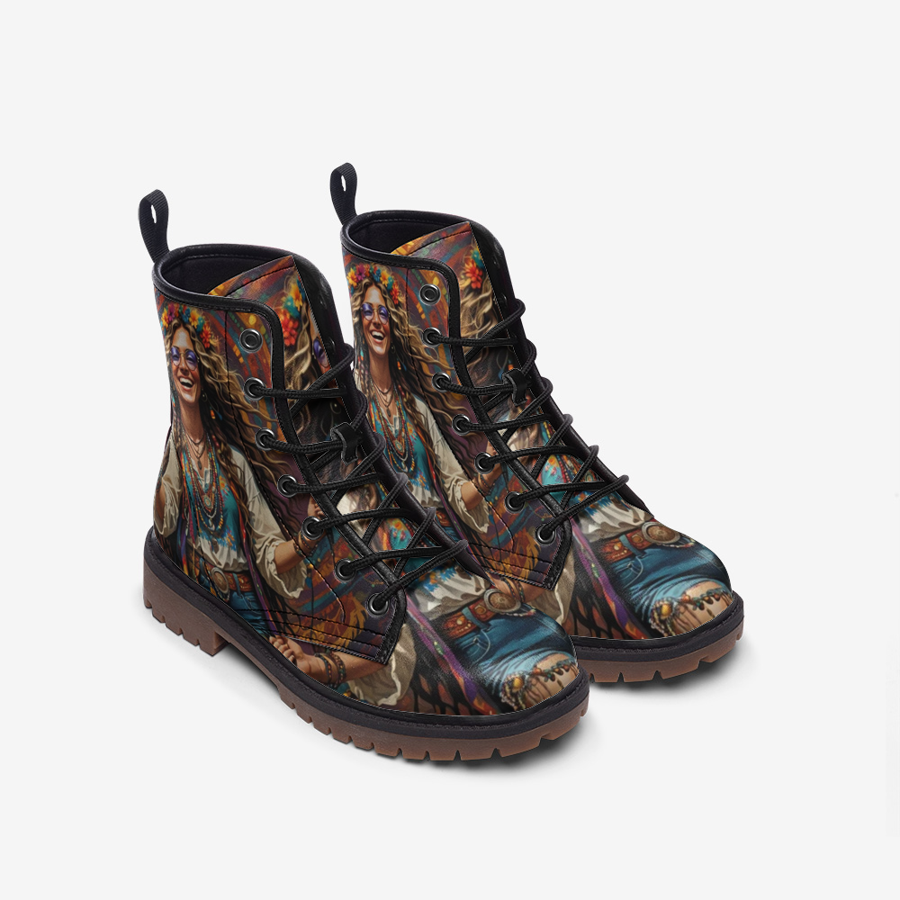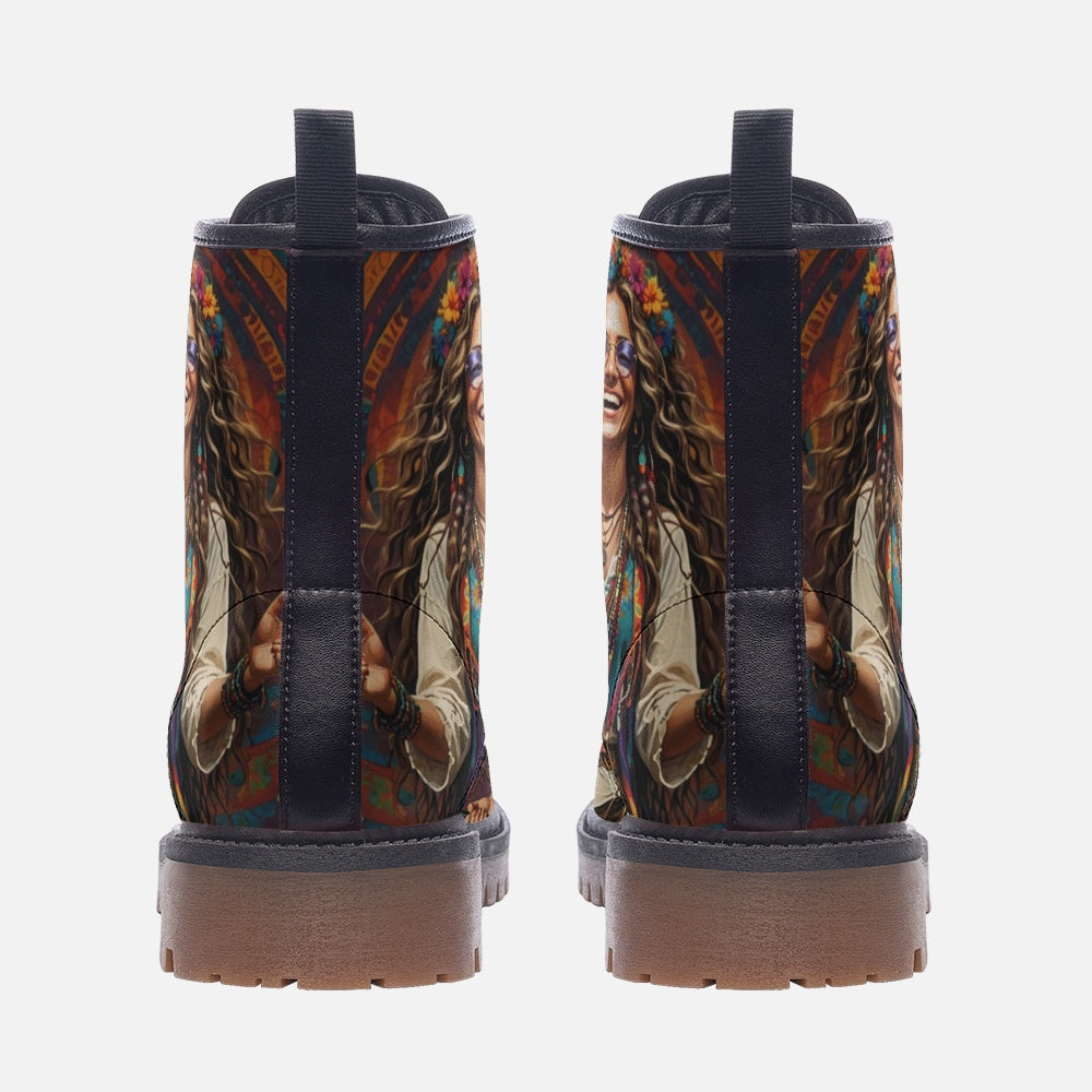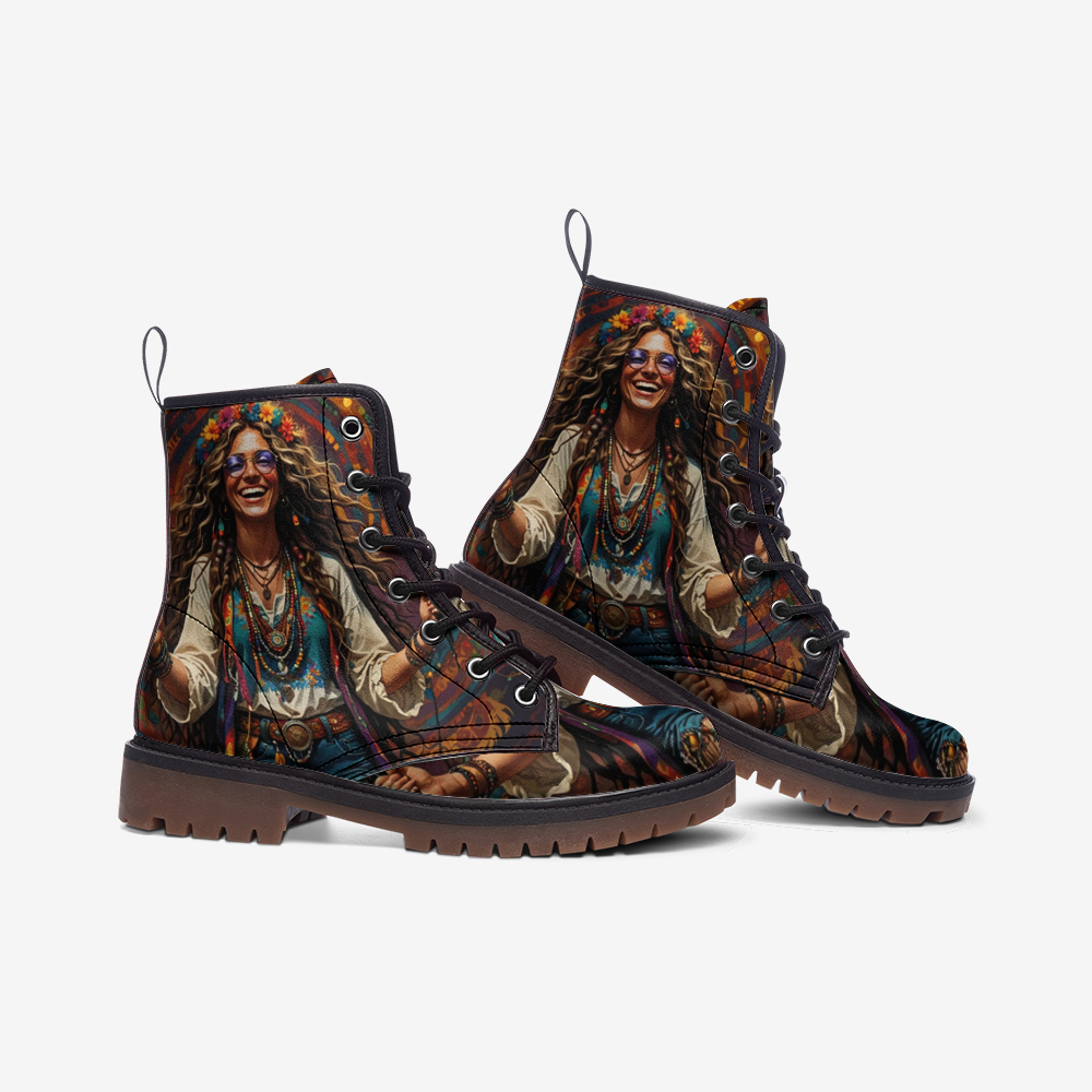 Emerald Blossoms - Beautiful Smiling Girl Casual Leather Lightweight Boots For Hippies
