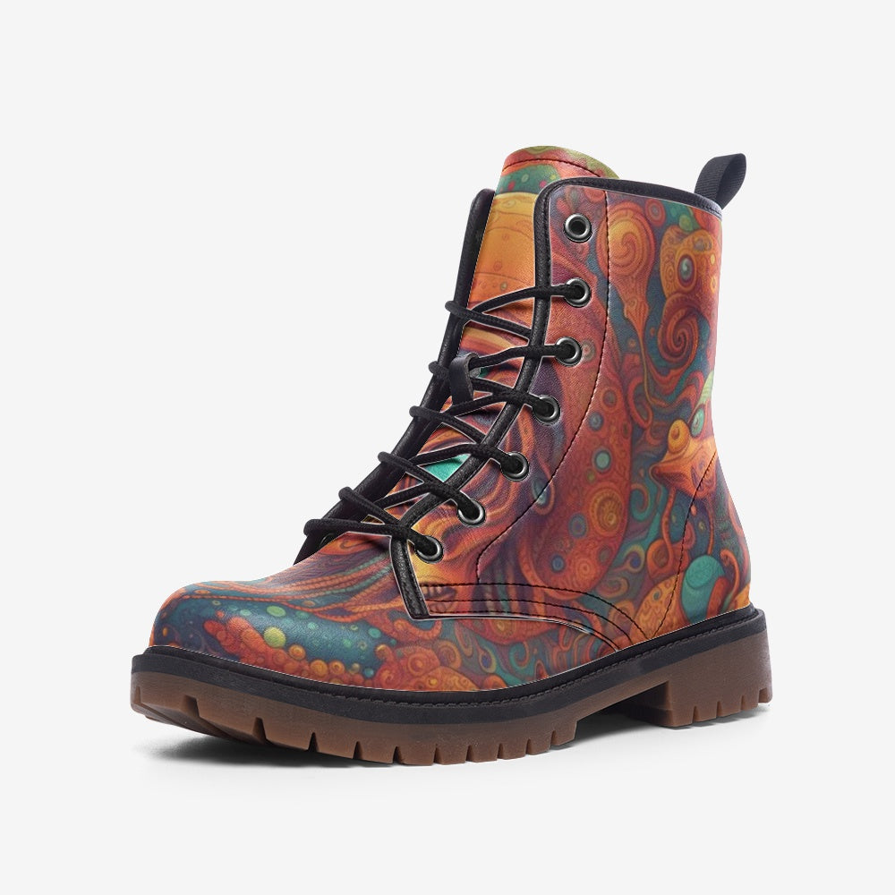 Emerald Blossoms - Imaginary Planet, Peace In Mind Leather Lightweight Boots for Hippies