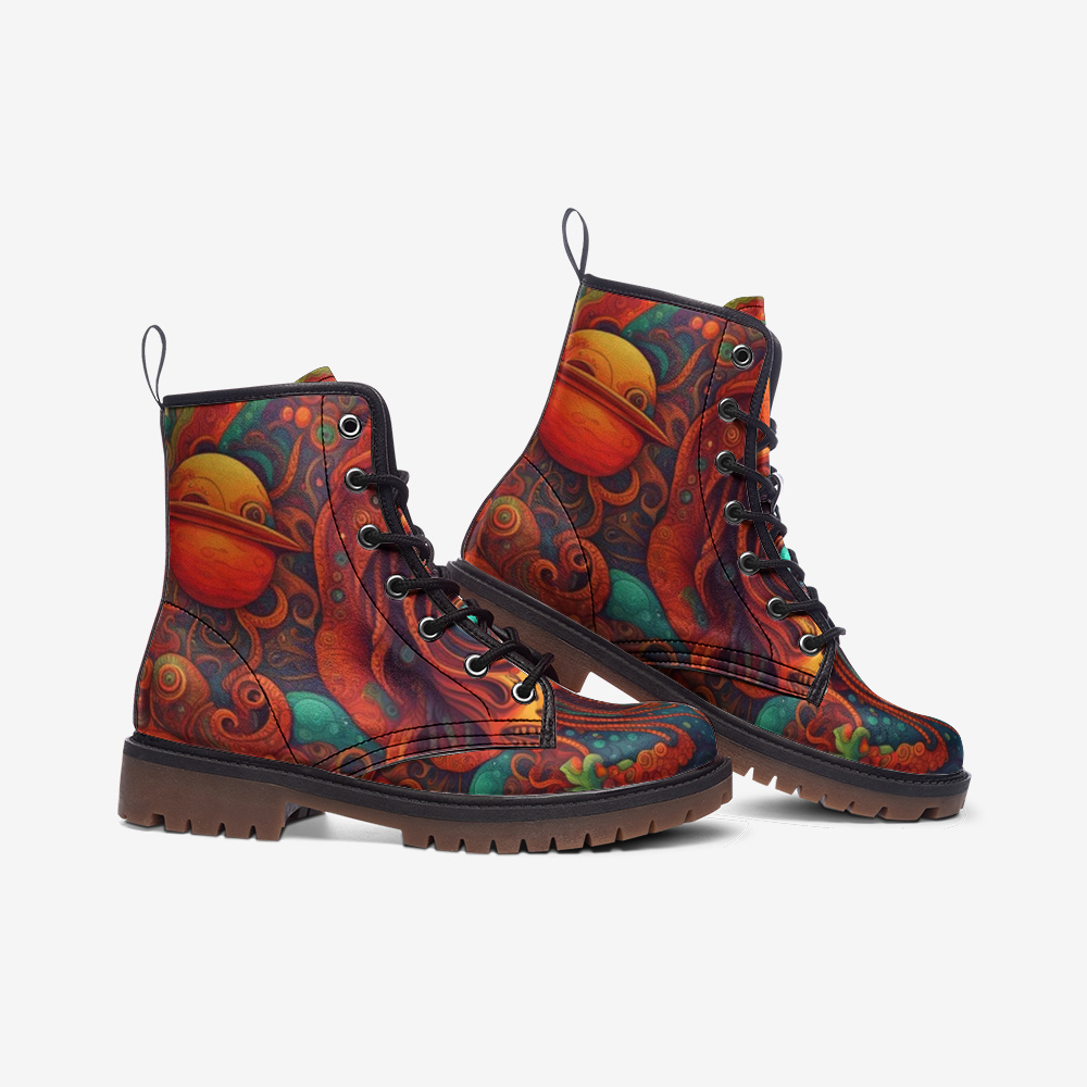 Enter an exotic world with our "Imaginary Planet" Lightweight Leather Boots, designed for the free-spirited hippie in you. These boots combine craftsmanship with imaginative sophistication, featuring a unique depiction of an imaginary planet on genuine leather.