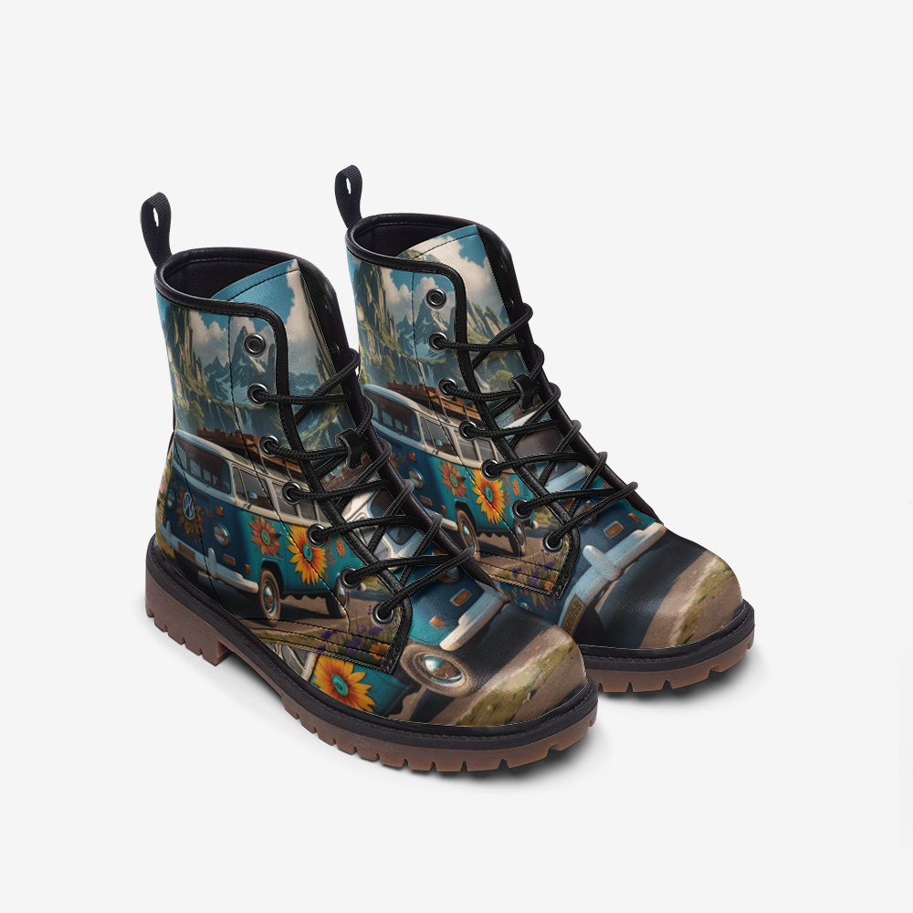 Hit the road in style with Emerald Blossoms' Summer Van Road Trip Casual Lightweight Leather Boots, crafted for adventurous hippies looking for comfort and classic charm. Each pair features a classic van motif on supple leather, blending a retro aesthetic with timeless craftsmanship. Whether you're exploring festivals or strolling around the beauty of nature, these boots offer the perfect combination of standout design and all-day comfort. Enter the world of bohemian inspiration and express your bohemian style with every step. Explore our collection today to find the ideal companion for your next summer adventure.