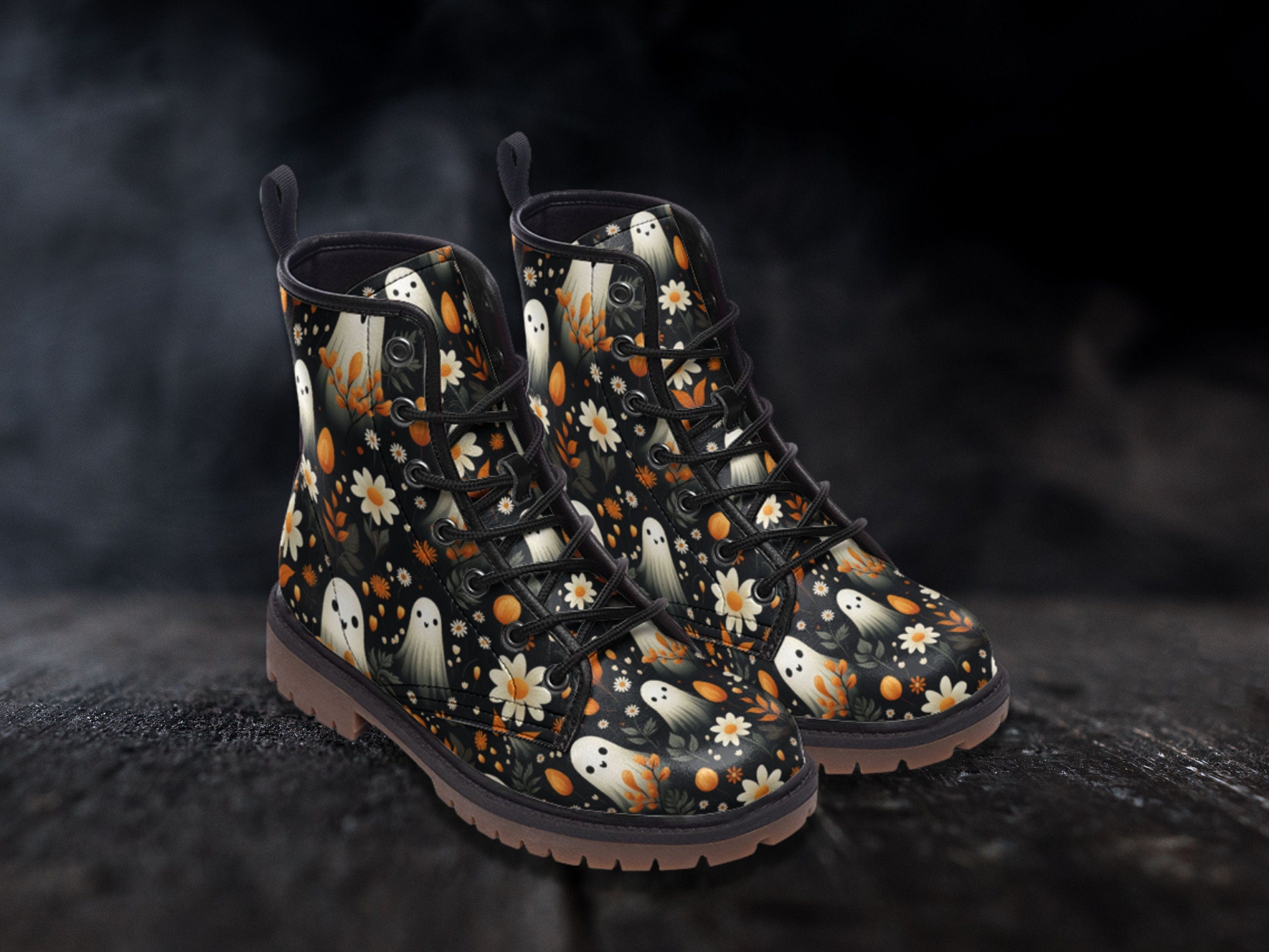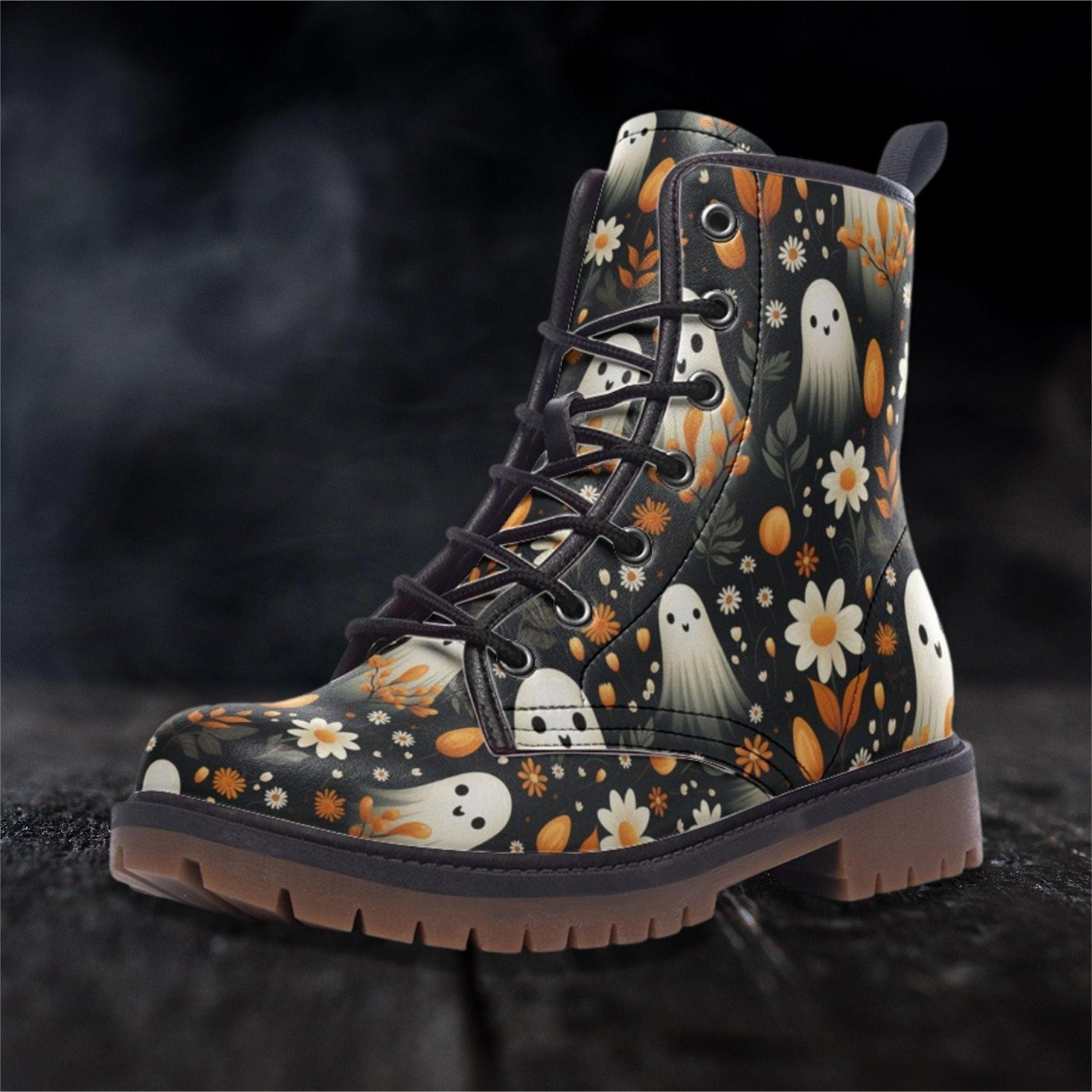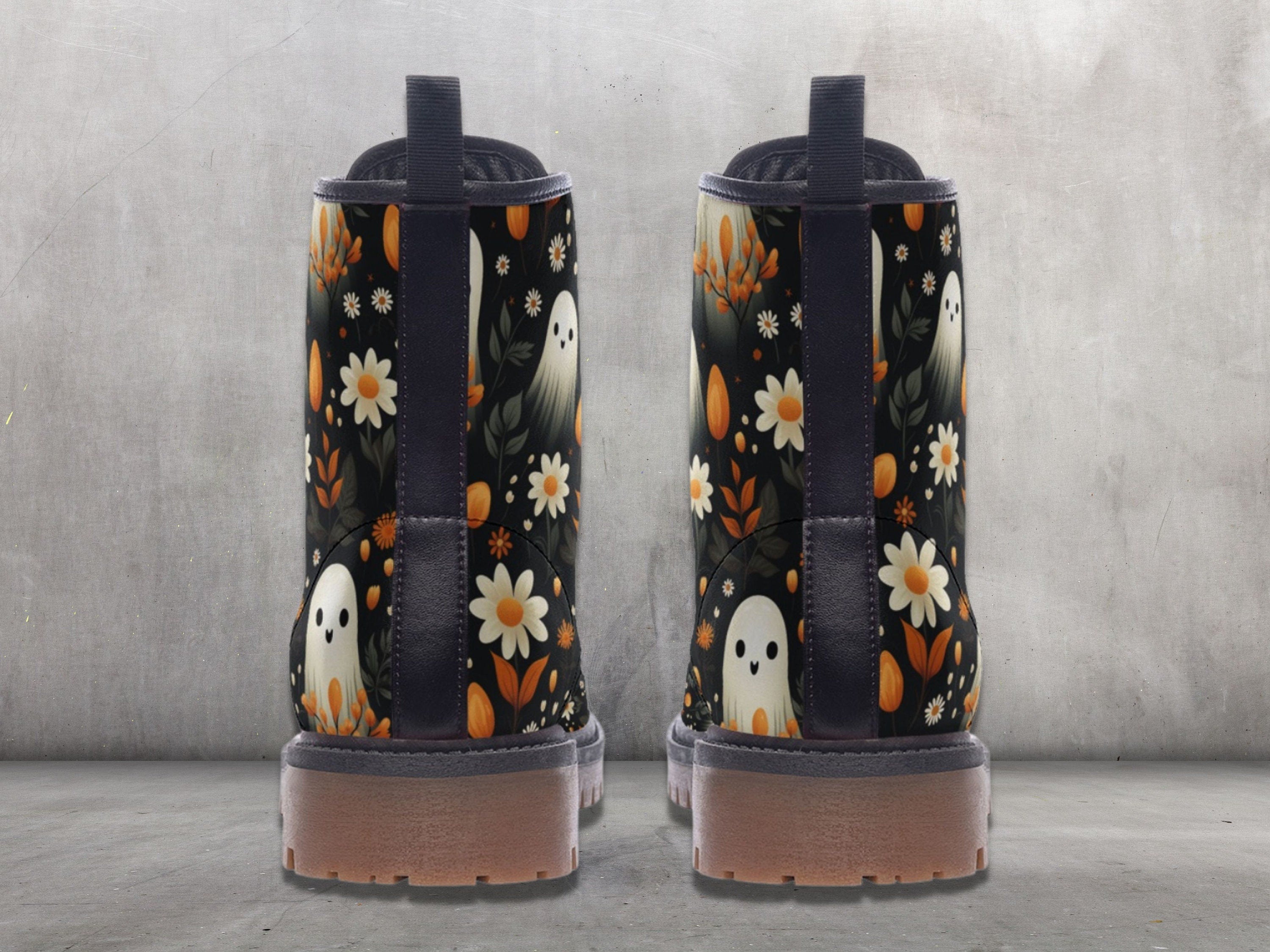 Emerald Blossoms - Wildflower Autumn, Halloween Cute Ghost Casual Leather Lightweight Boots For Fall Festivals