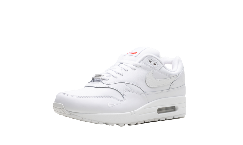 The Supreme x Nike Air Max 1 '87 SP takes the DNA of the shoe that started the visible Air revolution and elevates it with premium materials and signature Supreme branding. This 'Triple White' edition offers a clean, all-white aesthetic, making its subtle details shine through.