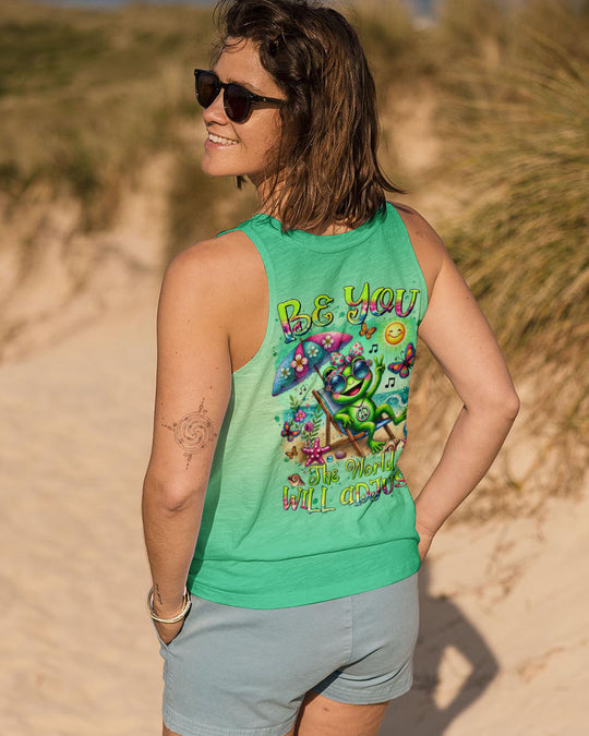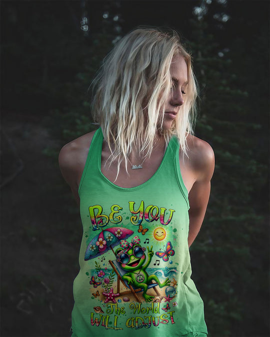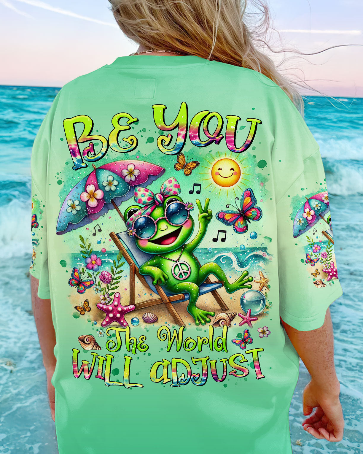 Emerald Blossoms - Be You The World Will Adjust Frog Beach All Over Print Shirt For Hippies