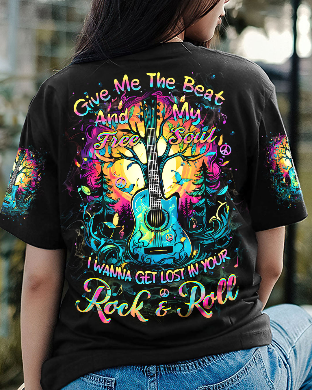 Ignite your passion with the Hippie Give Me the Beat and Free My Soul Guitar T-Shirt. Featuring a vibrant guitar design, this shirt captures the essence of music and freedom. Crafted from comfortable, premium fabric, it combines style and tone, perfect for those who live for the beat of life and freedom of expression.