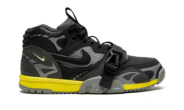 The Nike Air Trainer 1 SP “Dark Smoke Grey” is a modern version of the retro cross-training shoe that debuted in 1987. The “Dark Smoke Grey” features notable design modifications that advance the shoe’s vintage appearance into the future, specifically a buckle at the forefoot in lieu of its original strap design. The rest of the shoe is complete with an array of black and grey overlays. A black Swoosh is found on either side of the shoe. While contemporary in its look, the silhouette retains its original tooling that features a classic Air cushioning unit in the midsole.