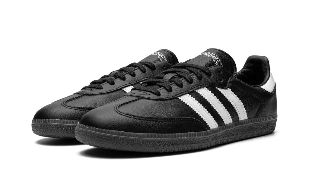The Fucking Awesome x adidas Samba “Black/White” is a collaboration by Jason Dill and Anthony Van Engelen’s skate brand on a classic-looking colorway of the ultra popular retro soccer shoe. Fucking Awesome and adidas continue their long-running partnership on the “Black/White” adidas Samba colorway. The shoe features a premium black leather upper with white leather Three Stripes branding on the sides. Additional white leather detailing is found on the heel tab on the back of the shoe. A black suede overlay appears on the toe. “Fucking Awesome” branding is seen on the tongue. A black rubber sole finishes off the look. Release date: May 24, 2023