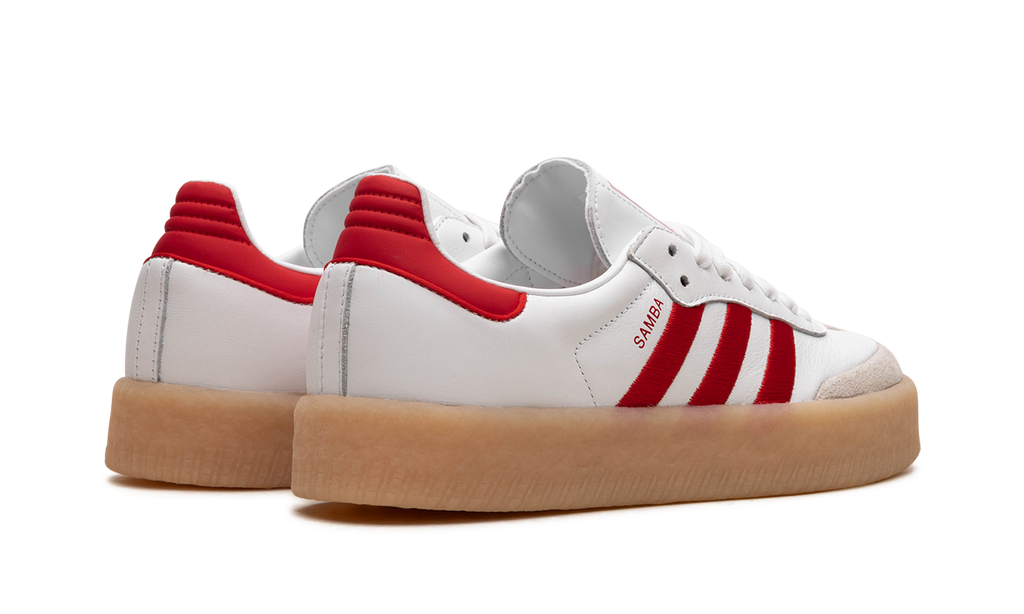 The adidas Sambae "White/Scarlet" is a modified version of the popular retro sneaker with contemporary design features. Based on the iconic adidas Samba model, the Sambae has a thick rubber midsole that gives the shoe a platform-style appearance. On this “White/Scarlet” colorway, the upper features a white leather construction with a tan suede overlay on the toe. Scarlet Three Stripes branding is located on the sides. A red “Samba” logo appears on the lateral side of the mid-panel, while an “adidas” logo can be seen on the tongue. The platform sole in gum rubber completes the look. Release date: December 1, 2023