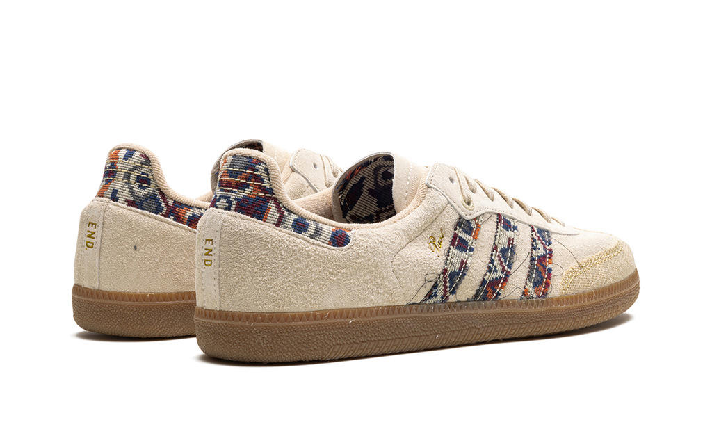 The END x adidas Samba “Past” is a collaboration by the retailer and adidas on a colorway of the retro indoor soccer shoe inspired by historical materials. The adidas Samba “Past” was part of adidas’s fan-judged Consortium Cup contest before it was released to the public. As for its design, the shoe features a cream-beige hairy suede construction with a heavy, durable tonal-colored fabric on the toe. A tapestry-like pattern on the heel and on the Three Stripes branding on the sides. “Past” replaces “Samba” branding on the lateral side of the mid-panel and co-branding is seen on the tongue. A gum rubber sole completes the look. Release date: November 23, 2023