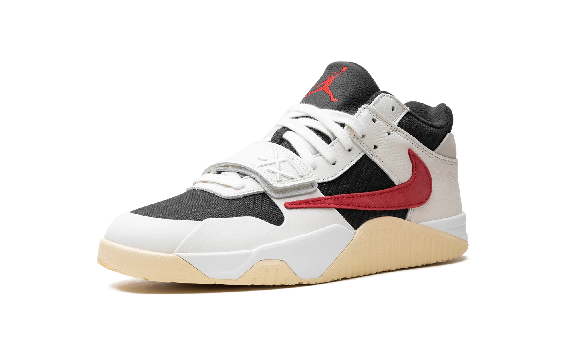 The Travis Scott x Jordan Jumpman Jack “University Red” is a popular colorway of hip-hop star Travis Scott’s first-ever signature shoe. Following a long history of collaborating with Nike and Jordan Brand, Travis Scott debuted his first signature shoe, the Jumpman Jack, with Jordan Brand in 2024. The “University Red” colorway features elements from Scott’s previous work with Nike and Jordan, including a backwards Swoosh and his signature branding. On the “University Red” colorway, the upper has a black textile base, Sail leather overlays, and a backwards University Red suede Swoosh on the lateral side. A white leather midfoot strap provides a lockdown fit. As mentioned, Travis’s signature branding appears throughout the design. Underfoot, a gum rubber outsole completes the look.