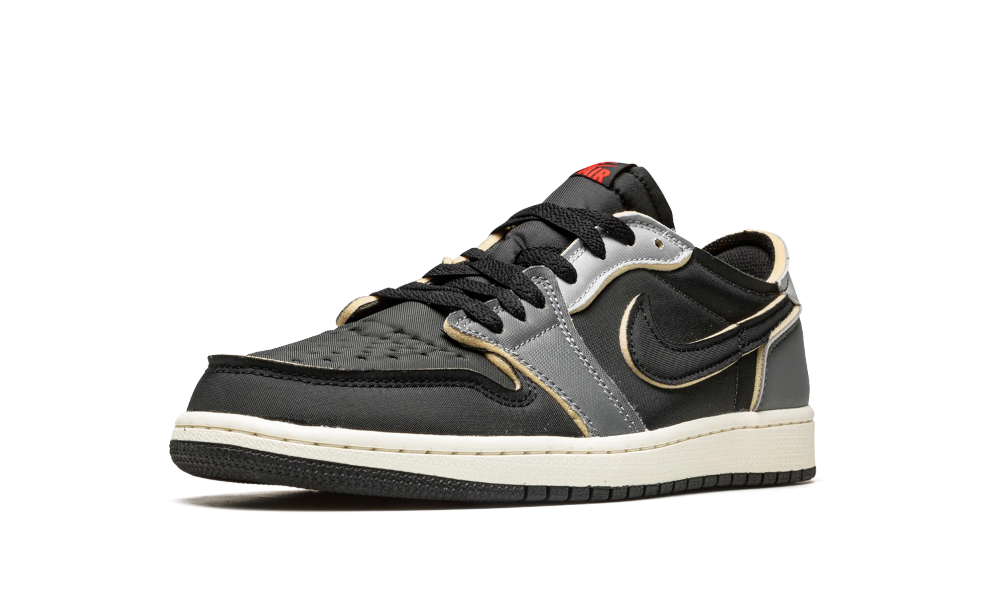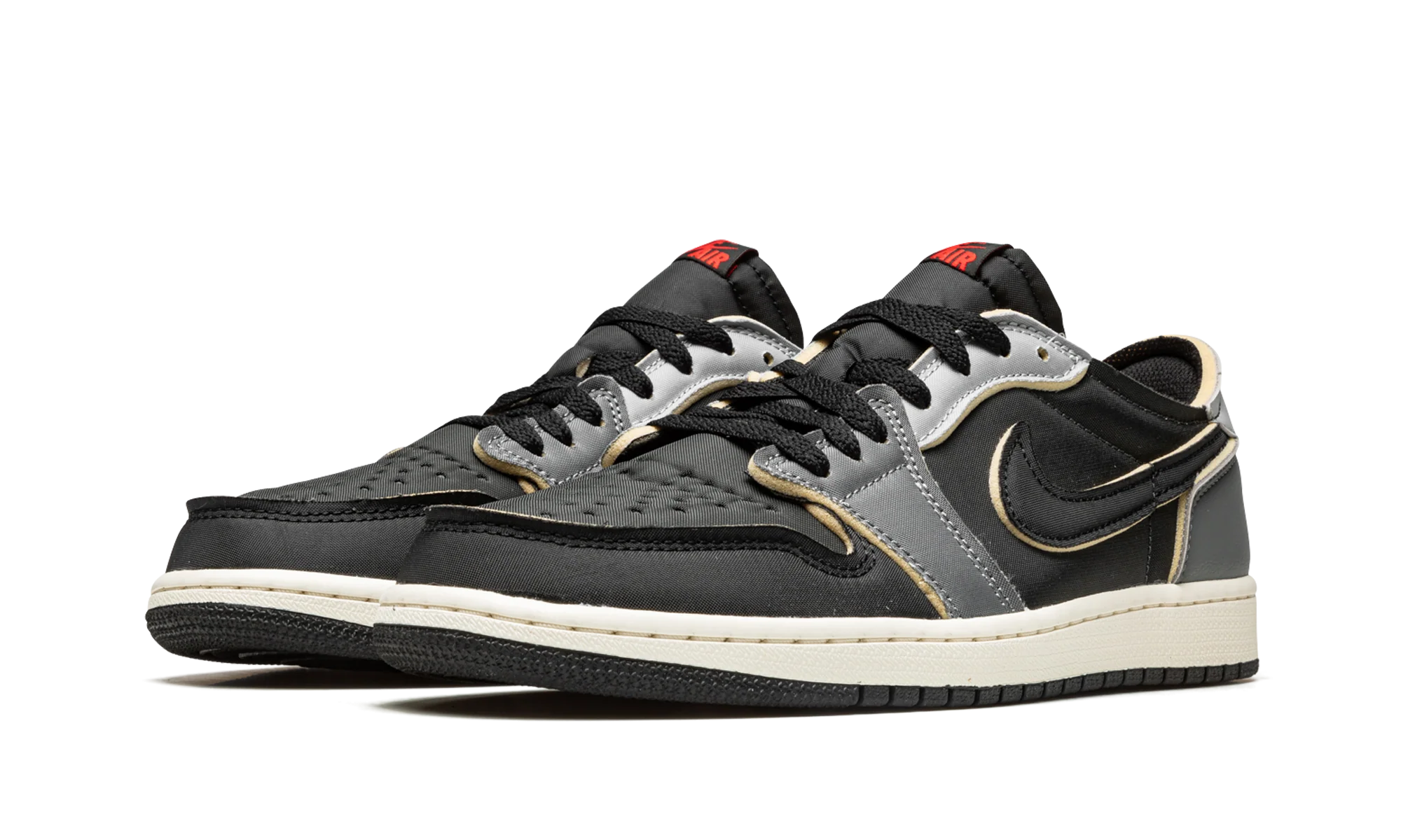 The Air Jordan 1 Low OG EX “Black/Dark Smoke Grey” is a neutral-based colorway of the low-top shoe with a “DIY” vibe. On the “Black/Dark Smoke Grey,” Jordan Brand opts to give the popular Jordan 1 Low OG several modifications that bring an unfinished aesthetic to the shoe, specifically by placing exposed foam around the edges of each overlay panel, the collar, and the Swoosh logos. The perforated toe and mid-panel are designed in black leather while the forefoot overlay appears in grey leather. A lighter shade of grey leather is found on the eyelets, and Dark Smoke Grey leather makes its way onto the heel. Classic “Wings” branding appears on the grey leather heel tab.