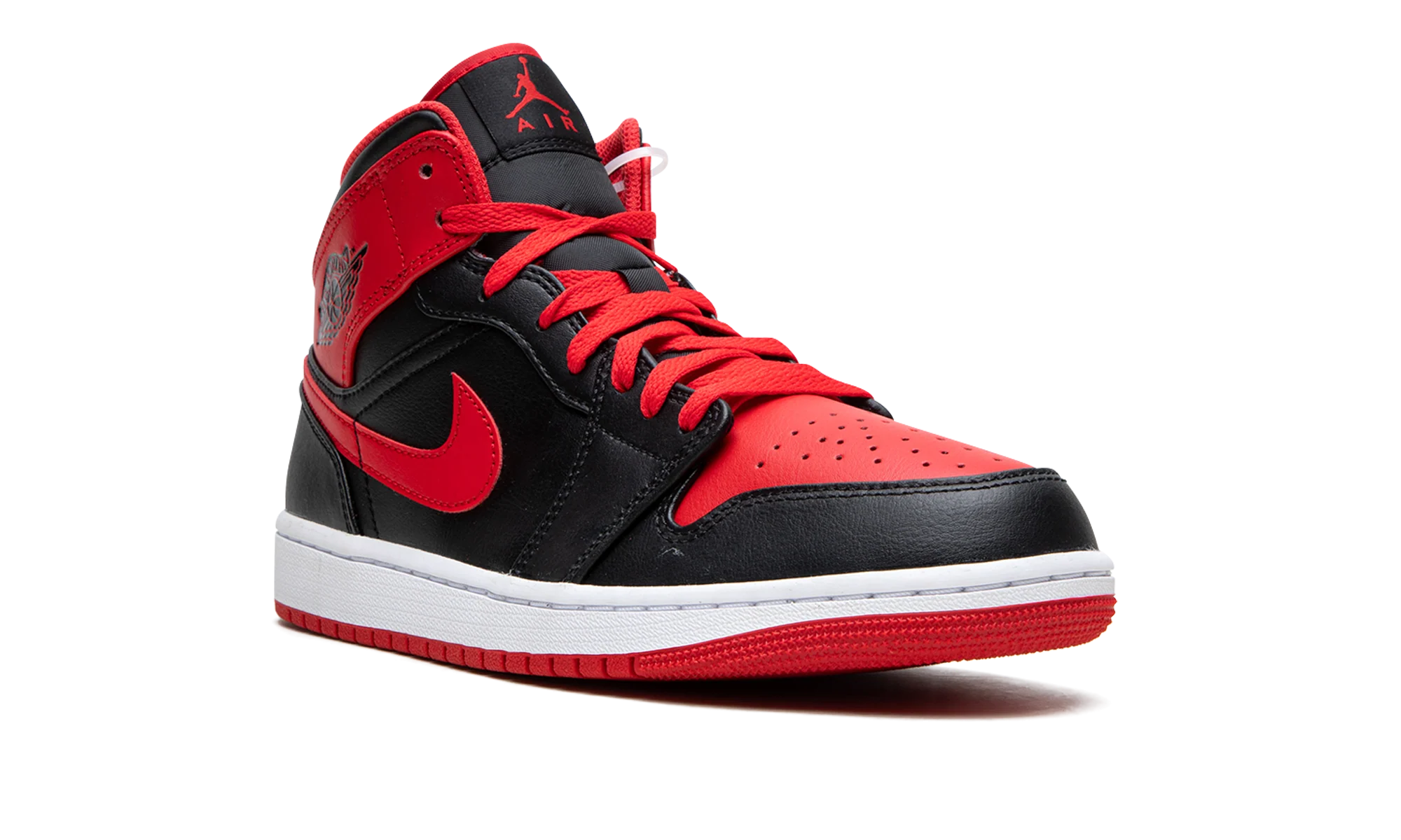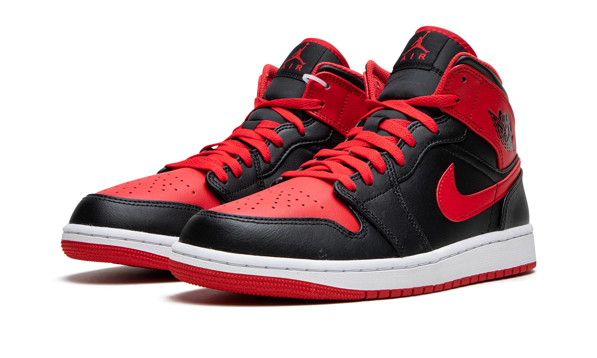 The Air Jordan 1 Mid “Alternate Bred” is a modified version of the classic, original Jordan 1 colorway that debuted in 1985. As its name suggests, the “Alternate Bred” switches up the look of the Air Jordan 1’s “Bred” makeup by changing its black-and-red color block ever so slightly. The “Alternate Bred” features a Fire Red leather perforated toe, while the rest of the base is designed in black leather. A Fire Red leather Swoosh appears on both sides of the shoe. A red leather overlay is found on the collar with a black “Wings” logo. Underfoot, a white rubber midsole and Fire Red outsole complete the look.