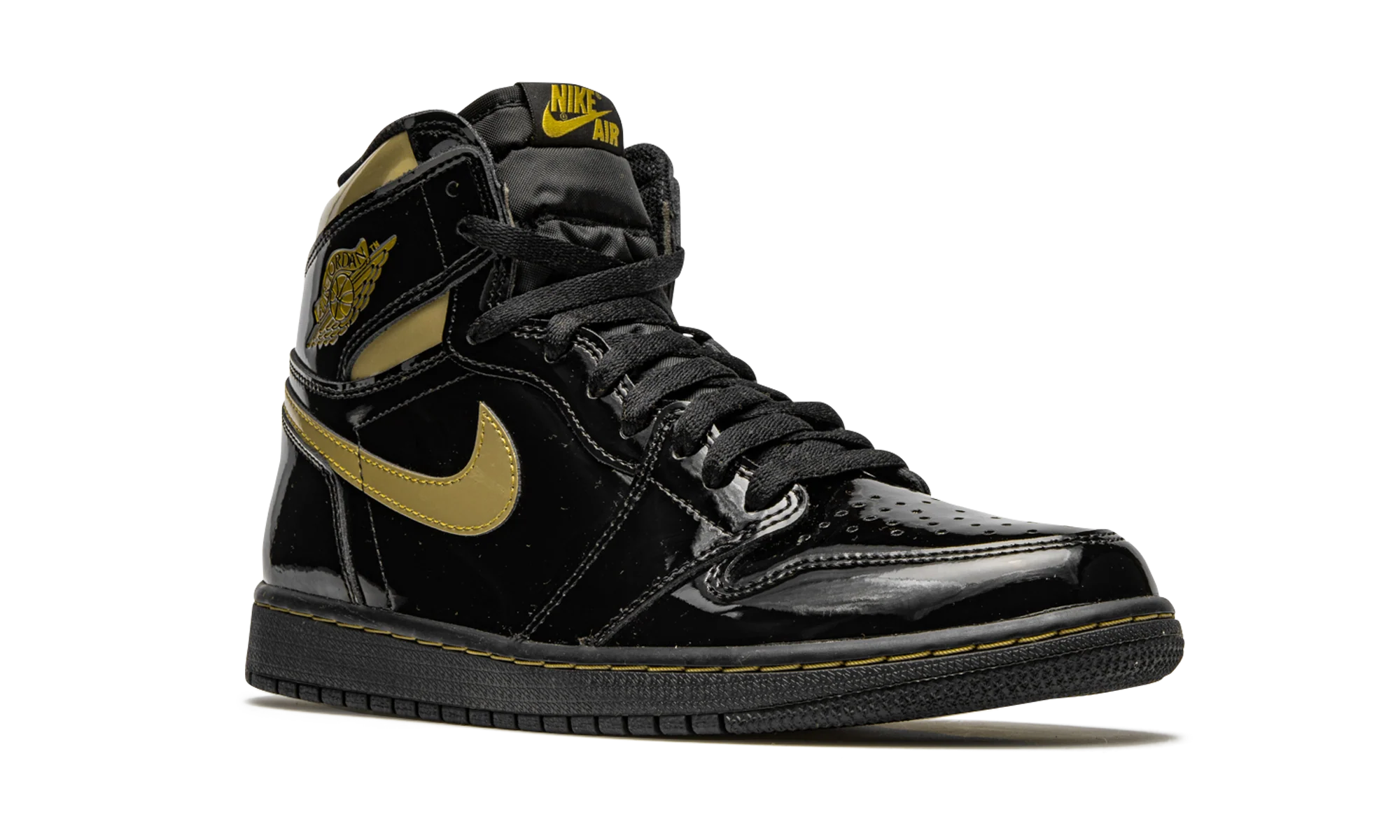 he Air Jordan 1 High OG “Black/Metallic Gold” is one of several exciting colorways from Jordan Brand’s Holiday 2020 collection. A luxurious take on Michael Jordan’s first signature shoe in the coveted high-top silhouette, the “Black/Metallic Gold” employs premium black patent leather on the entire upper, including the perforated toe, mid-panel, and heel. The look is reminiscent of the Jordan 1 Mid from 2003 that featured the same black leather upper with Metallic Gold accenting. Like that release, the modern look displays a gold leather Swoosh on either side and a gold “Wings” emblem on the collar. Additional Metallic Gold detailing appears beneath the collar overlay and on the “Nike Air” insignia on the black nylon tongue tag. A black rubber sole puts the finishing touches on the glossy Jordan 1 High “Black/Metallic Gold.