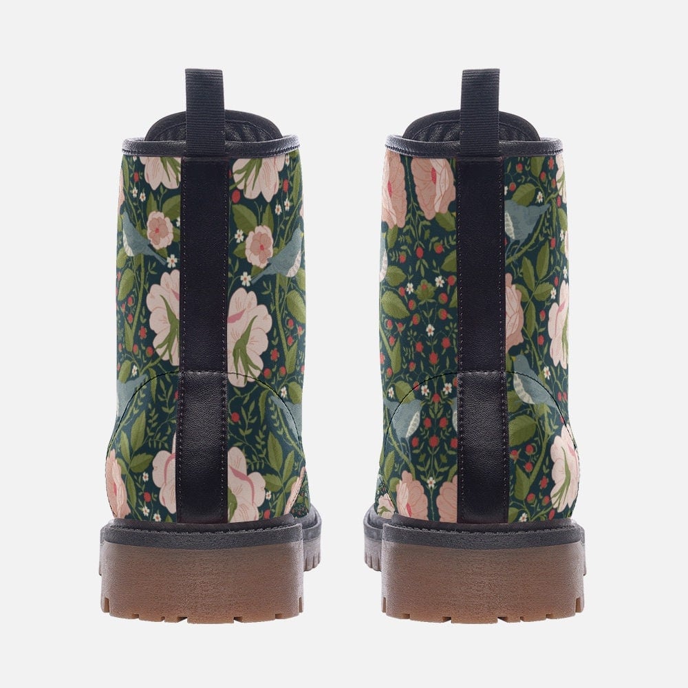 Emerald Blossoms - Green Birds Of William Morris Vegan Leather Boots For Hippies