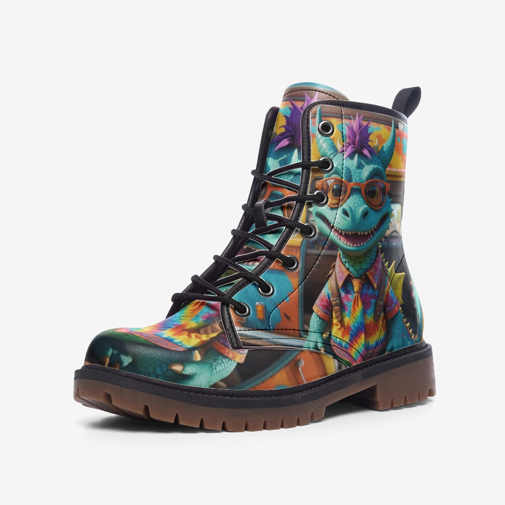 Emerald Blossoms - Cute Blue Dragon Casual Leather Lightweight Boots For Hippies