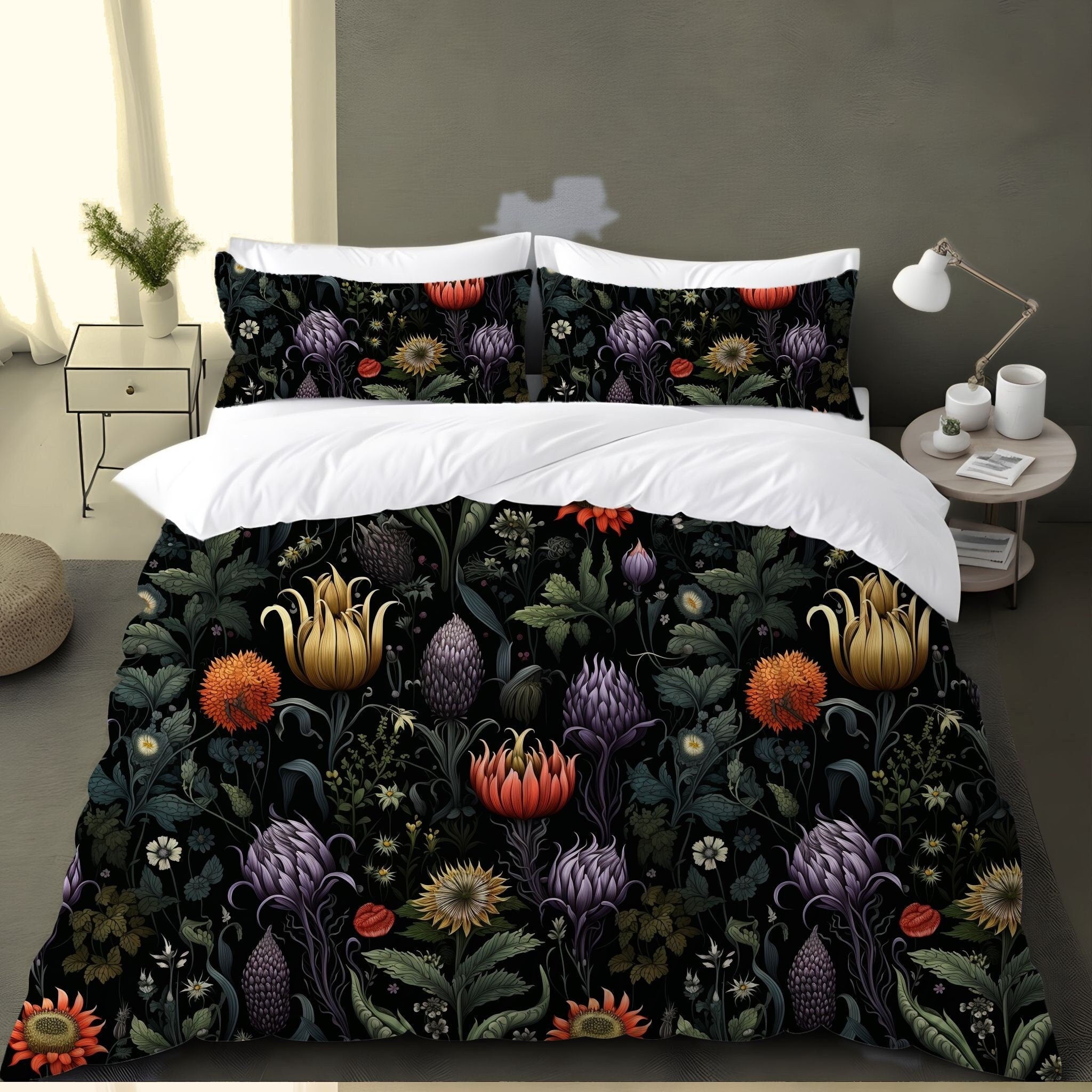 Welcome the magic of autumn with the Enchanted Autumn Floral Bedding Set by Emerald Blossoms. Adorned with witchy florals and rich emerald tones, this Halloween-inspired collection combines mystical charm with bohemian style. Perfect for creating a cozy, enchanting retreat, bringing seasonal charm to any hippie haven.