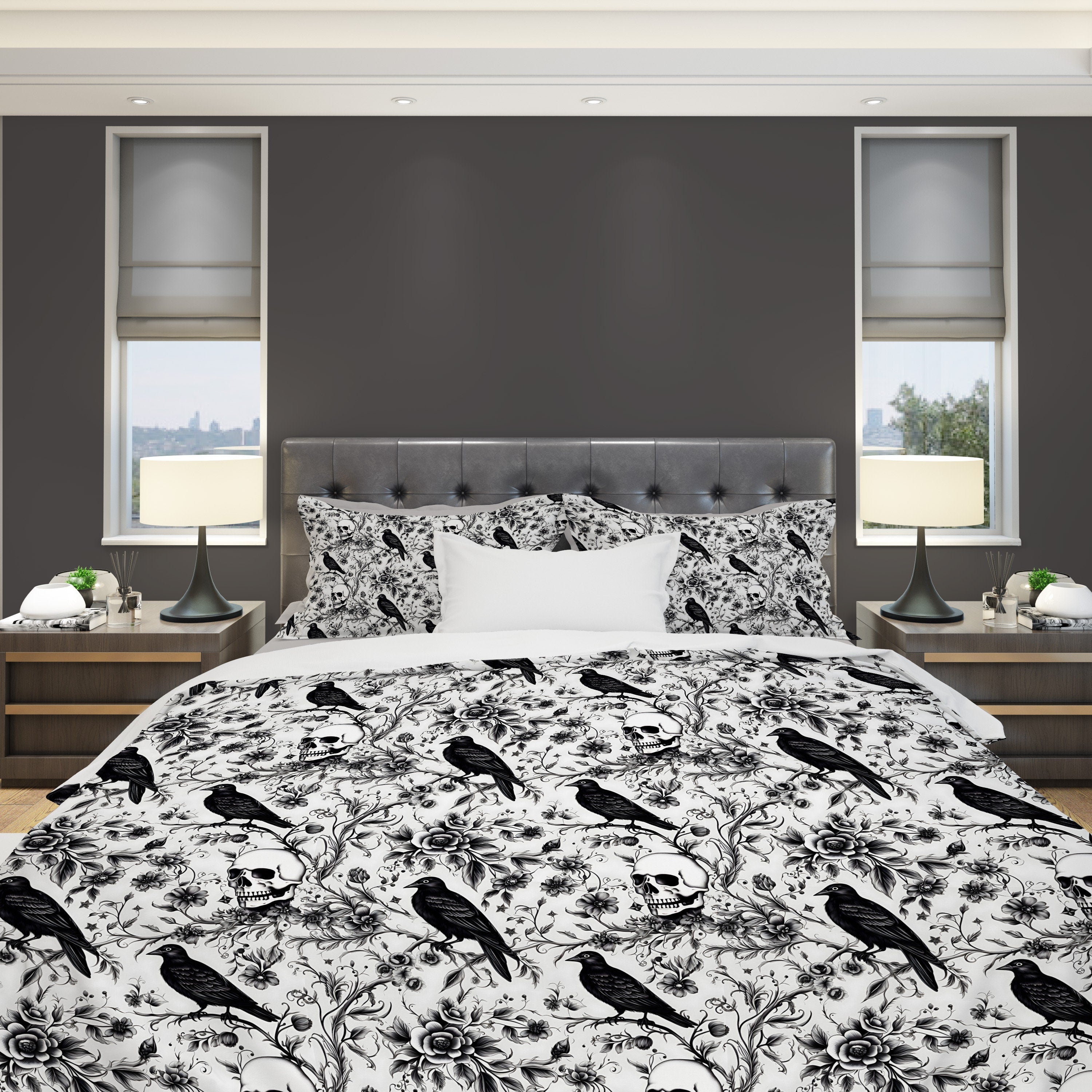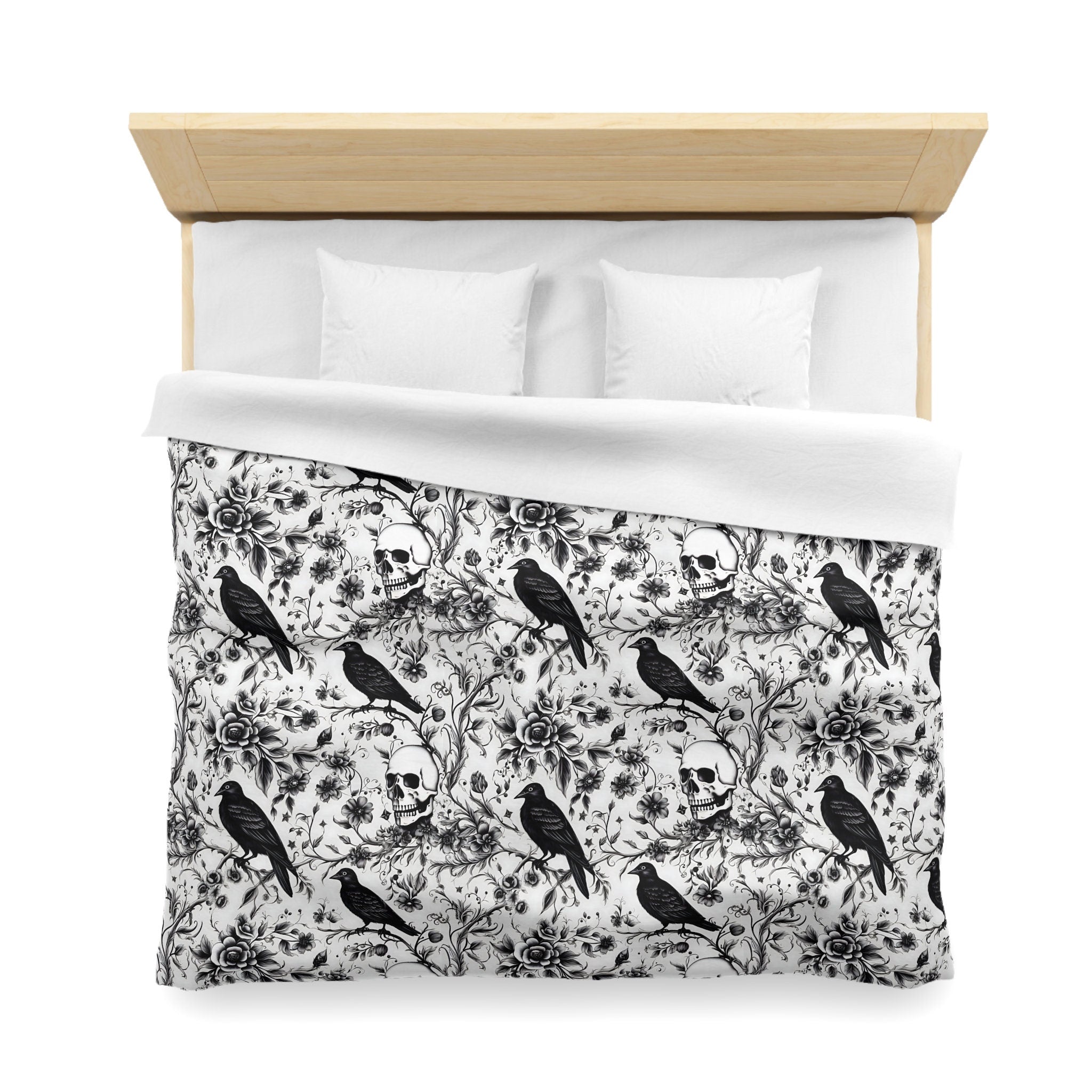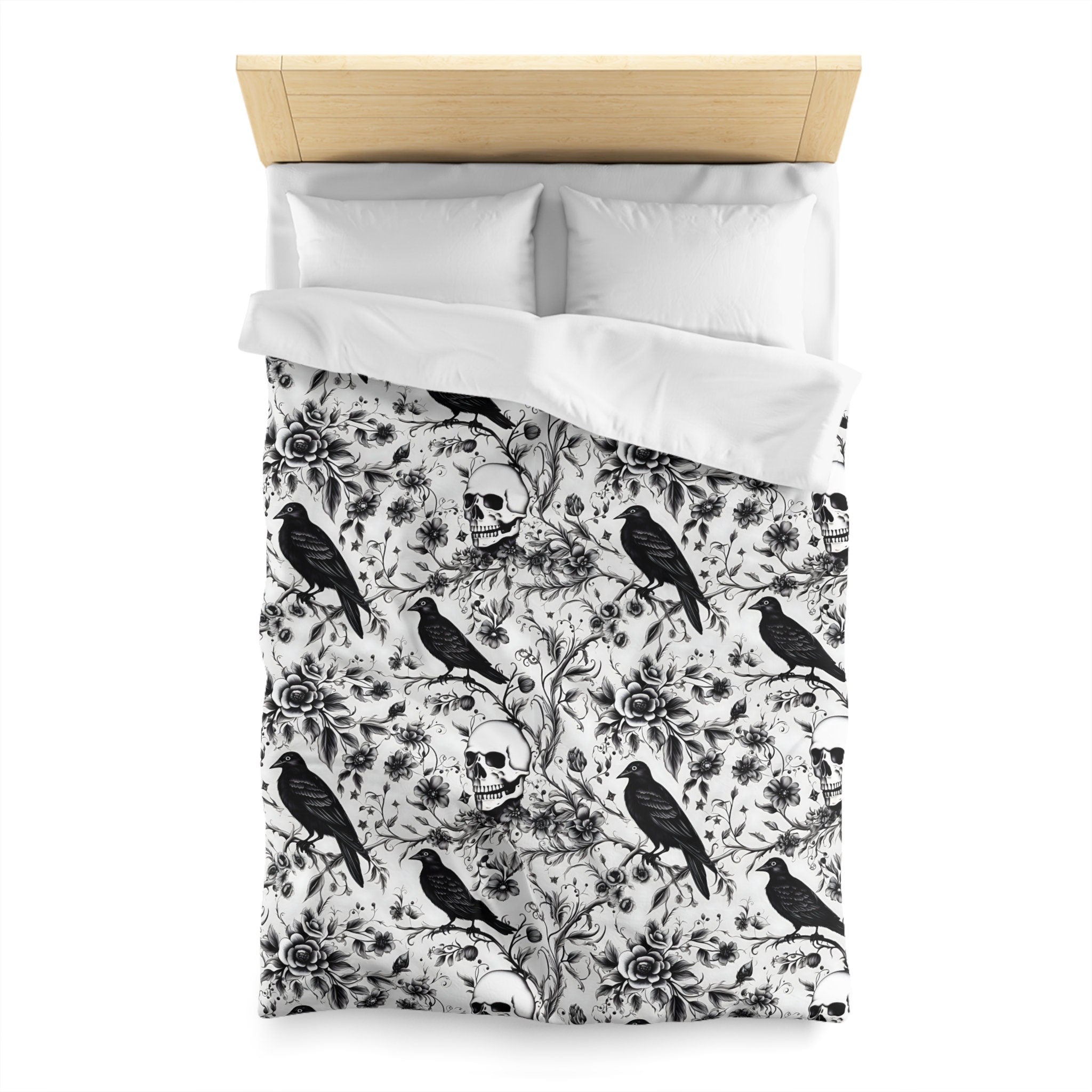 Emerald Blossoms - Enchanted Autumn, Halloween Raven Skull Garden Bedding Set For Hippies