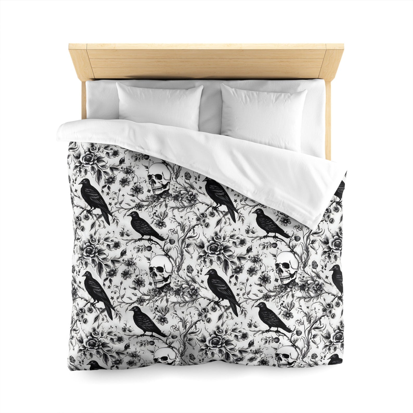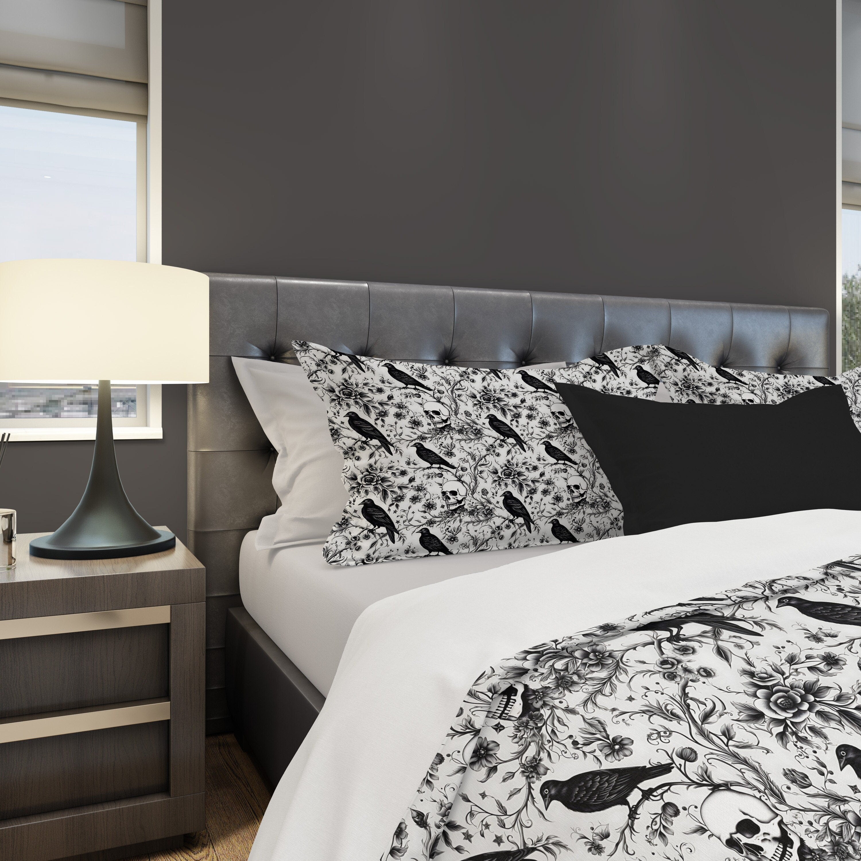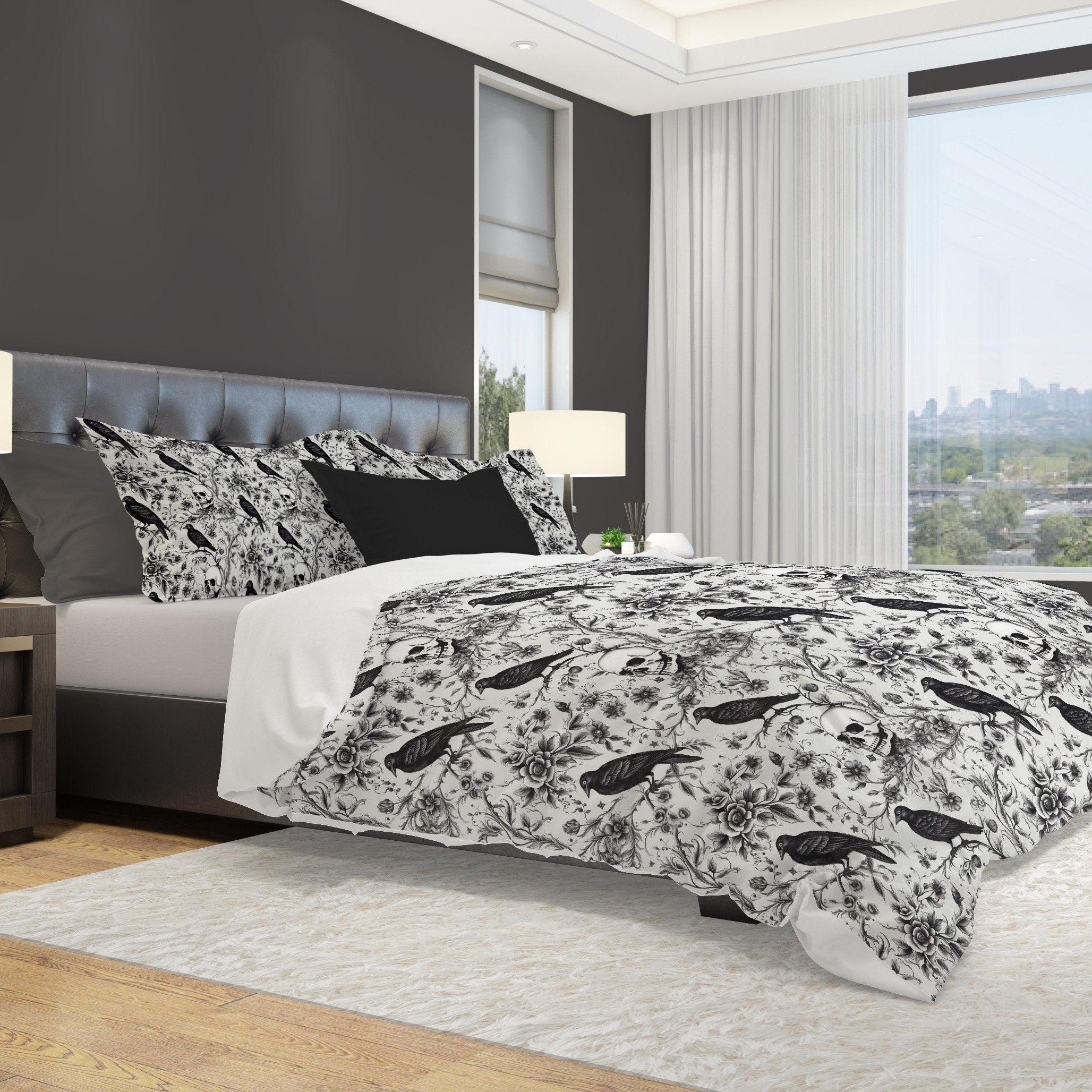Emerald Blossoms - Enchanted Autumn, Halloween Raven Skull Garden Bedding Set For Hippies