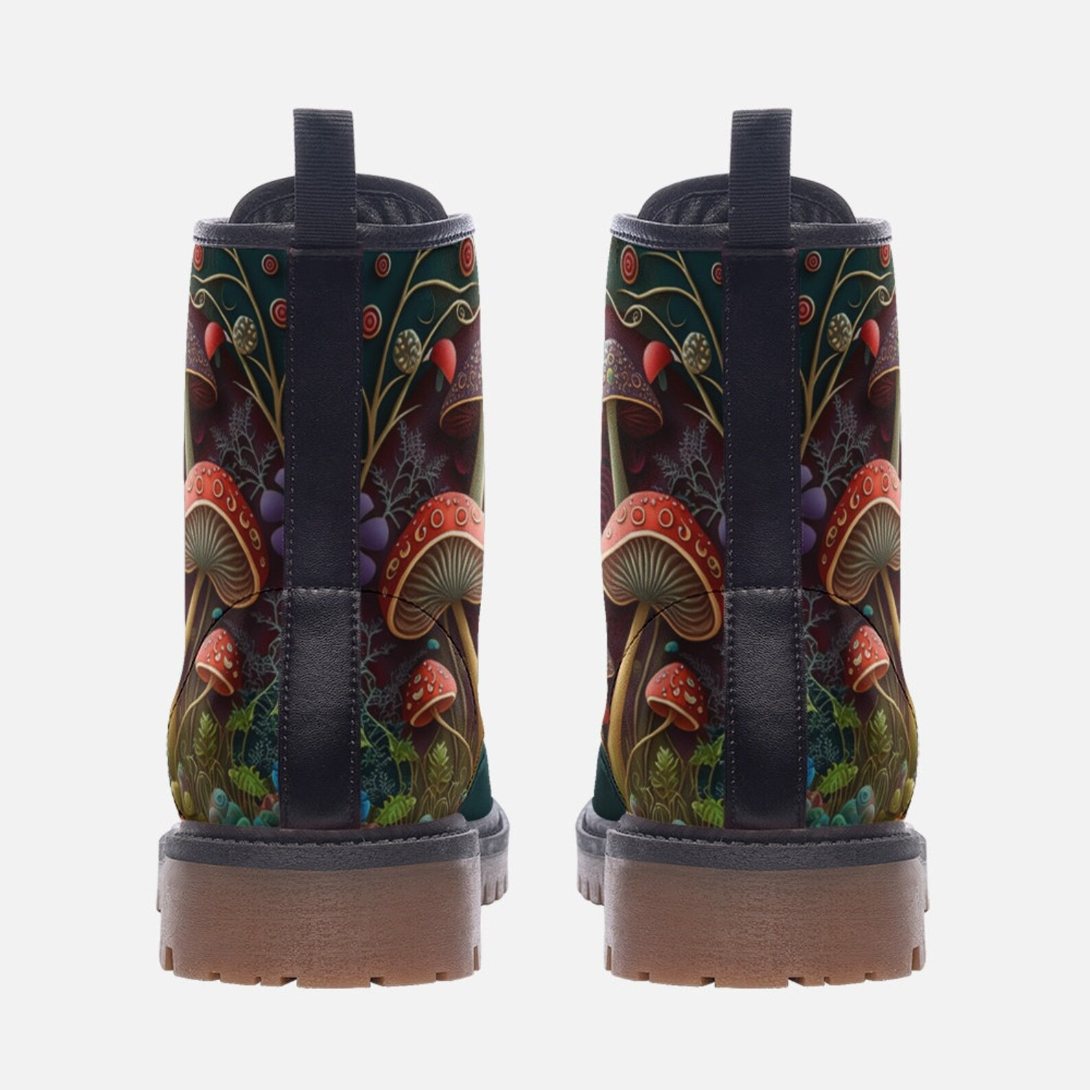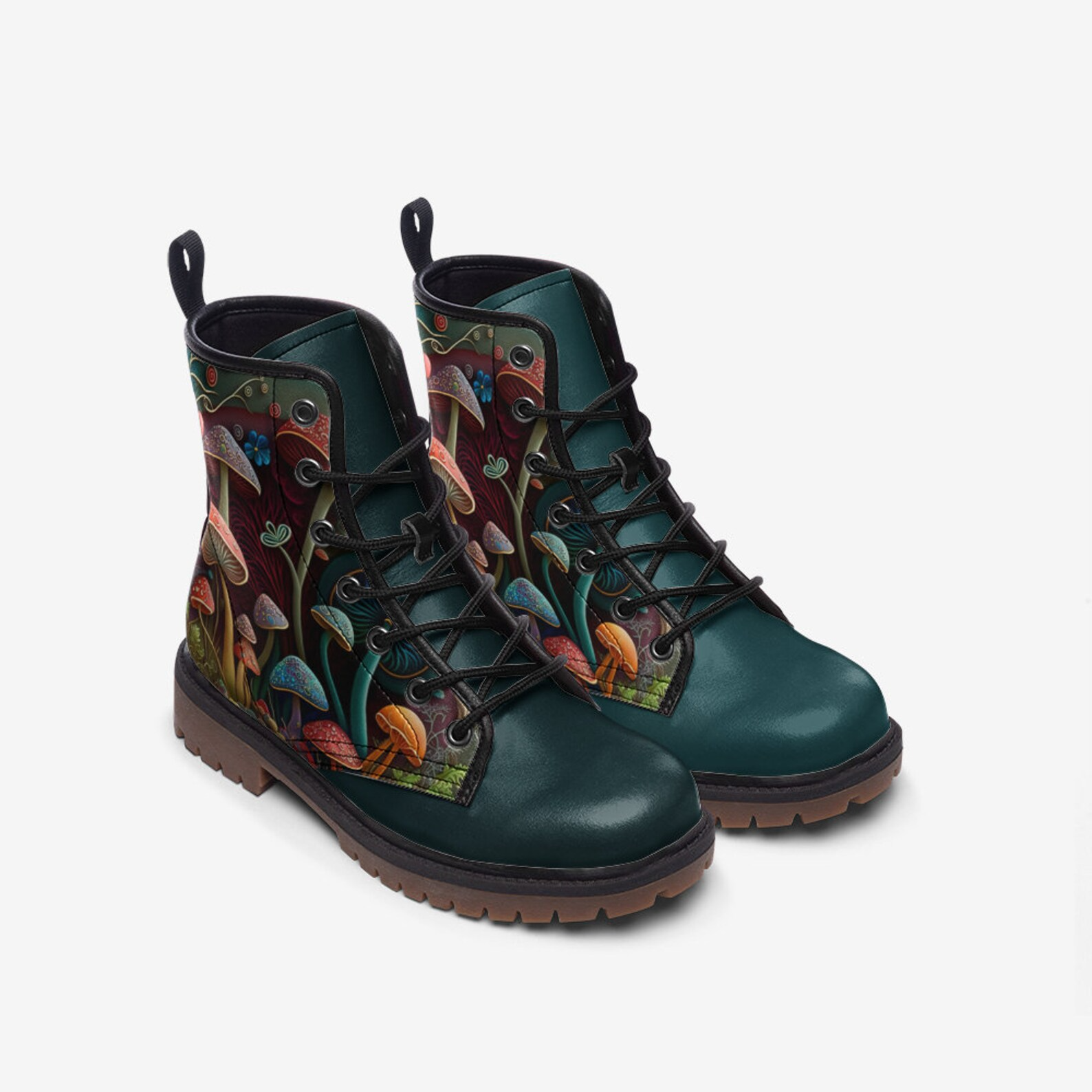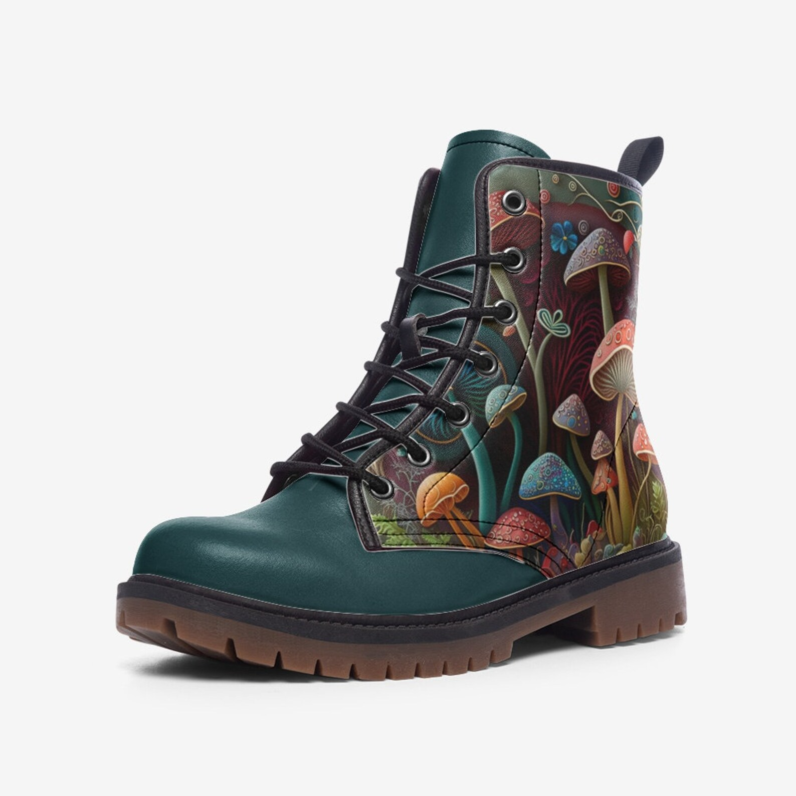 Emerald Blossoms - Mushroom Vegan Leather Combat Boots For Hippies