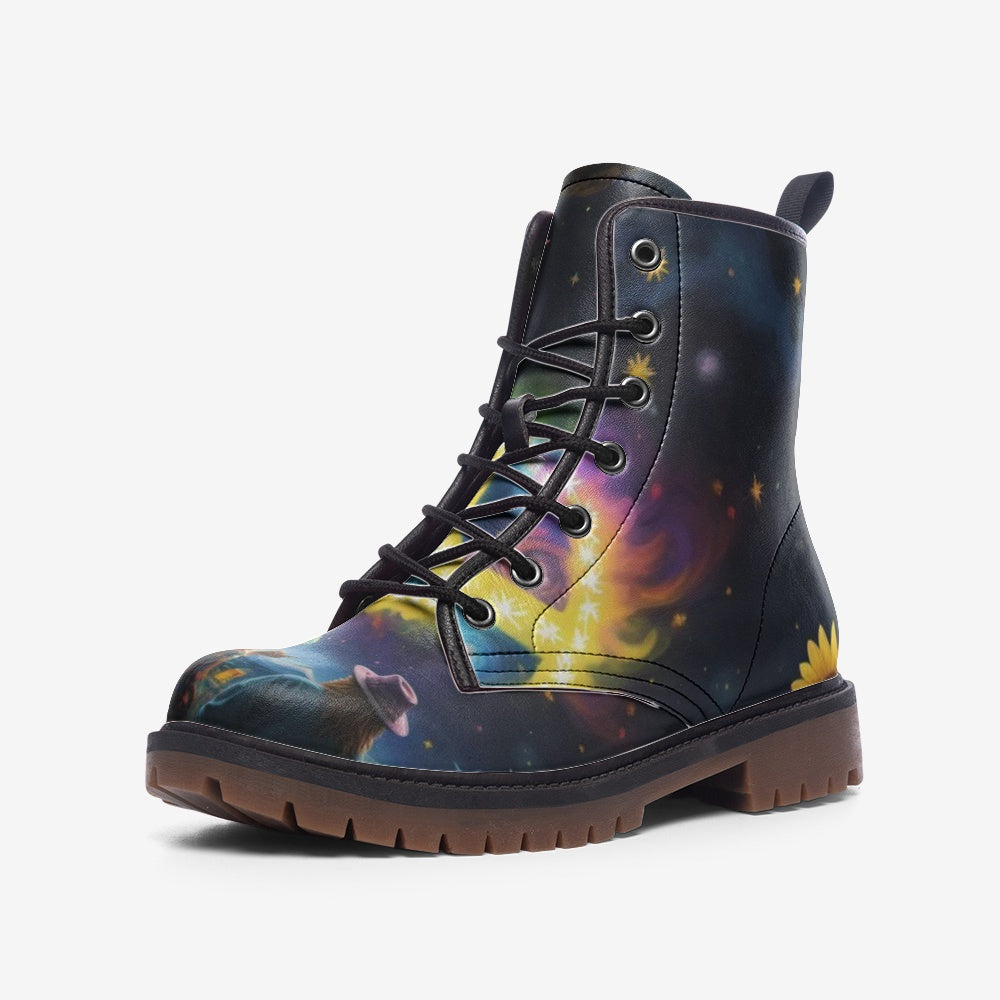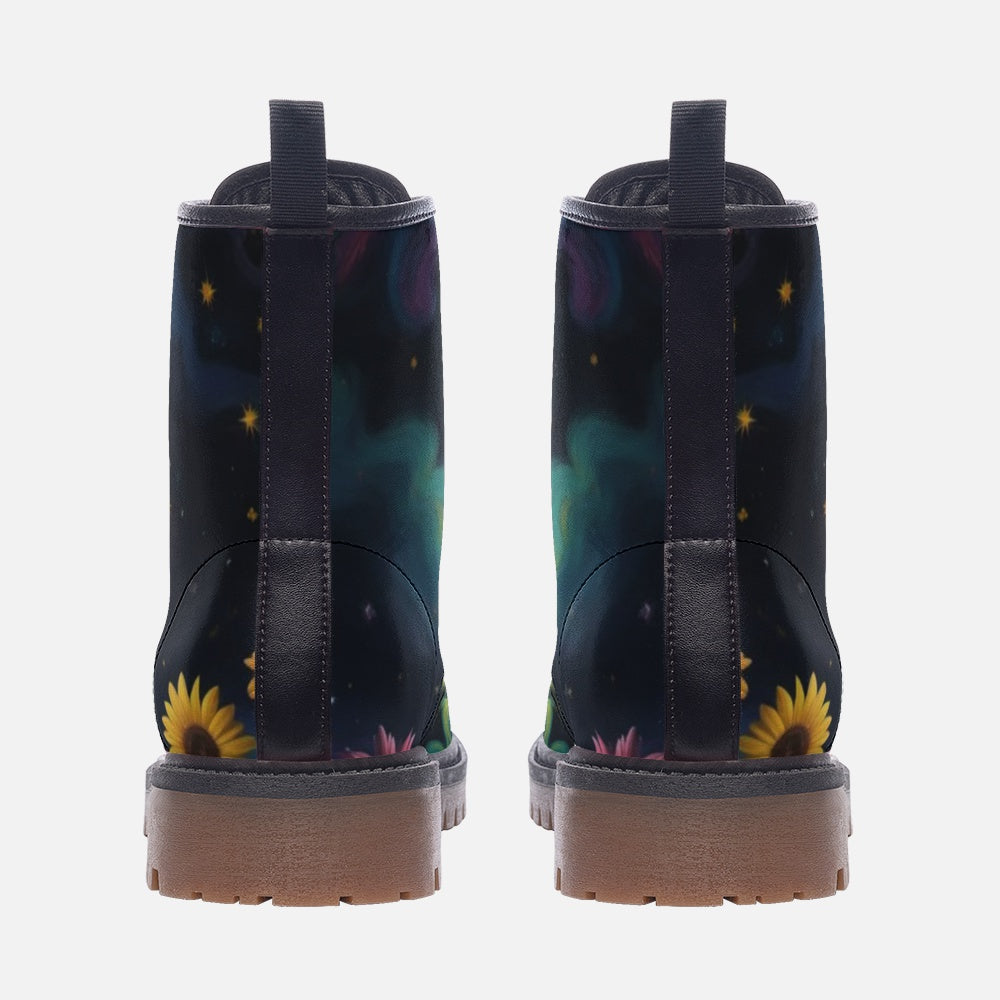 Emerald Blossoms - Peace Symbol Light, Sky Night Casual Leather Boots For Hippies