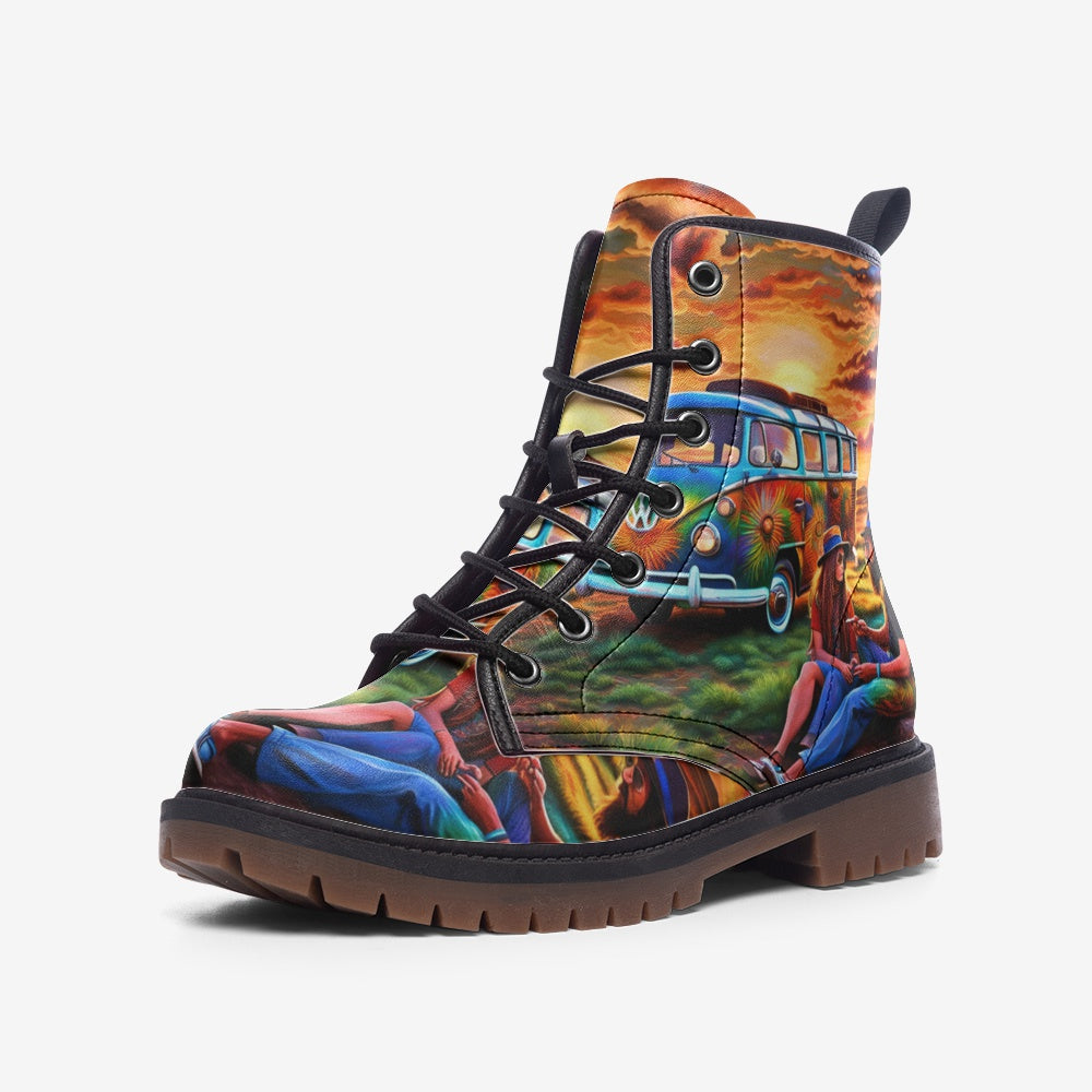 Capture the essence of romance with the Emerald Blossoms - Stunning Sunset View Boots. Featuring a breathtaking sunset design, these casual leather boots are perfect for hippie couples embarking on their dream trips. Lightweight and crafted for comfort, they are ideal for those who cherish romantic moments and scenic adventures. Step into these boots and make every journey as beautiful and unforgettable as the sunset itself.
