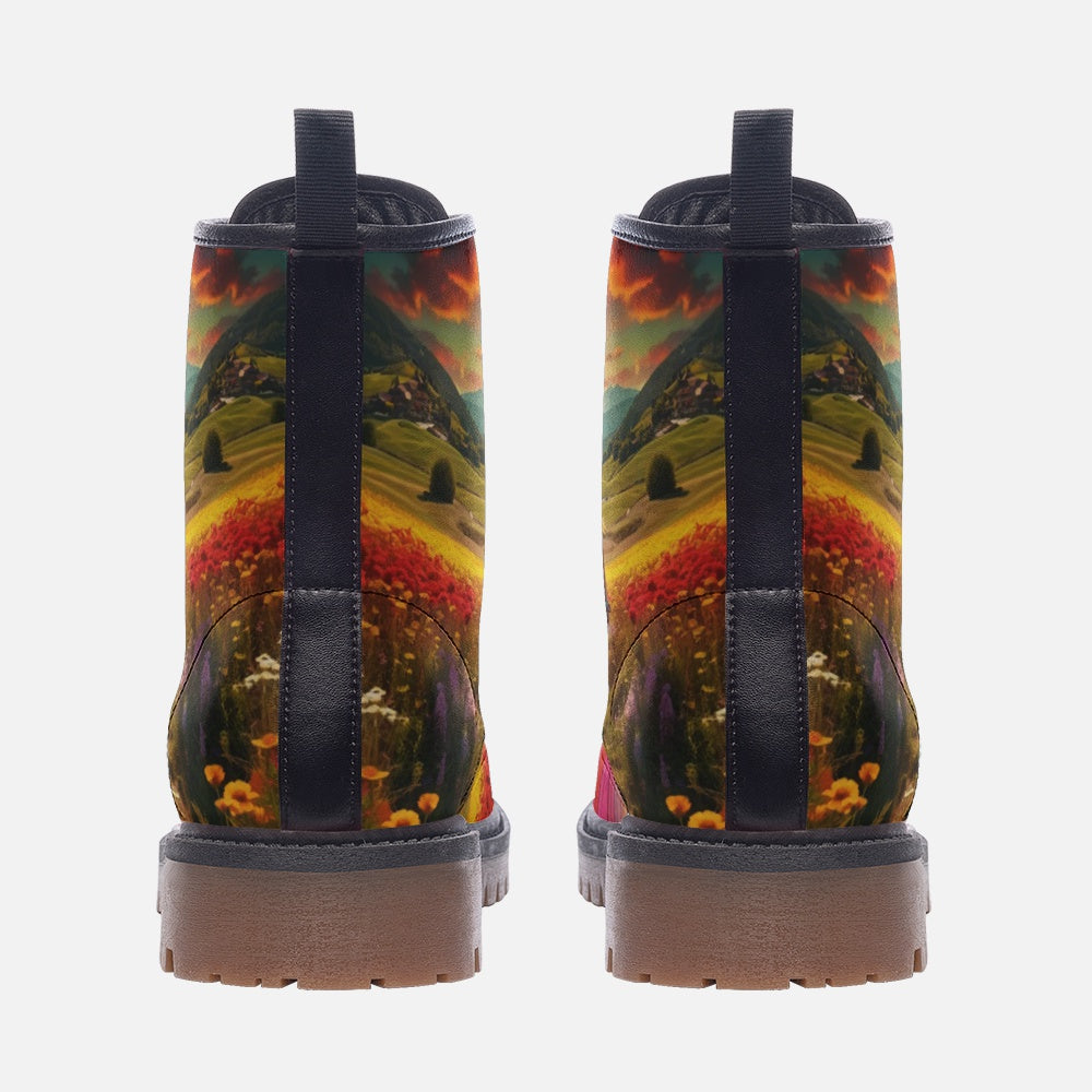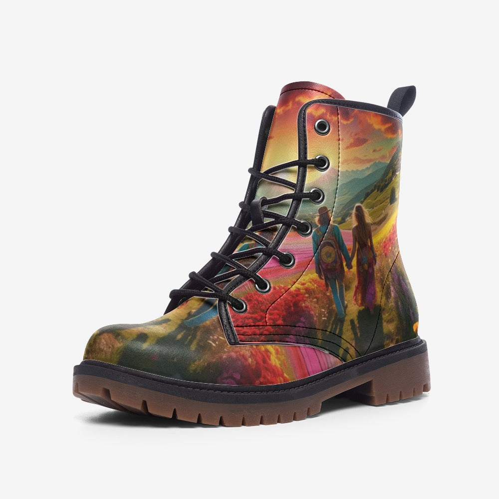 Emerald Blossoms - Together To The Hippie Destination Casual Leather Lightweight Boots For Hippies