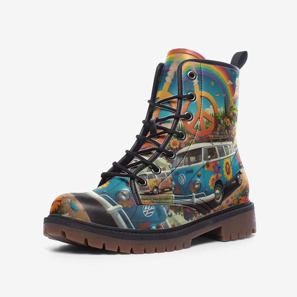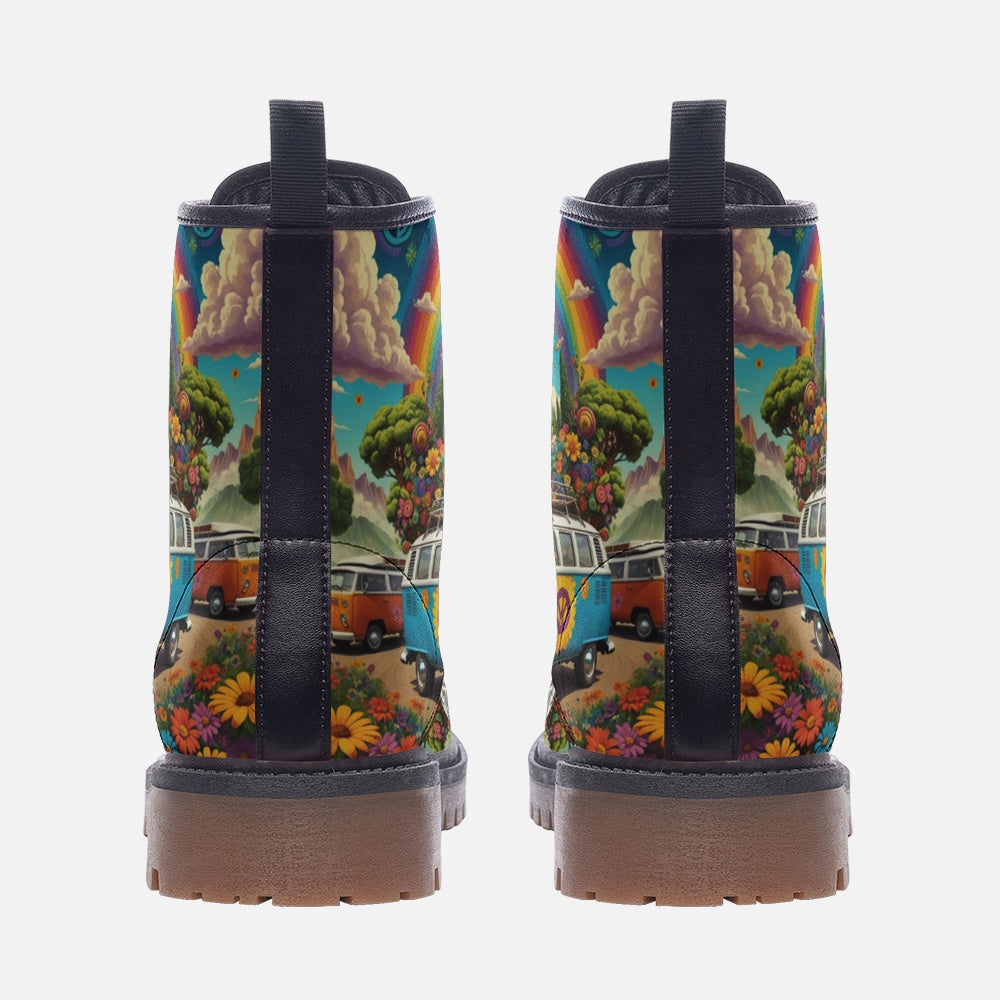 Emerald Blossoms - Volkswagen Van To Hippie Destination Casual Leather Lightweight Boots For Hippies
