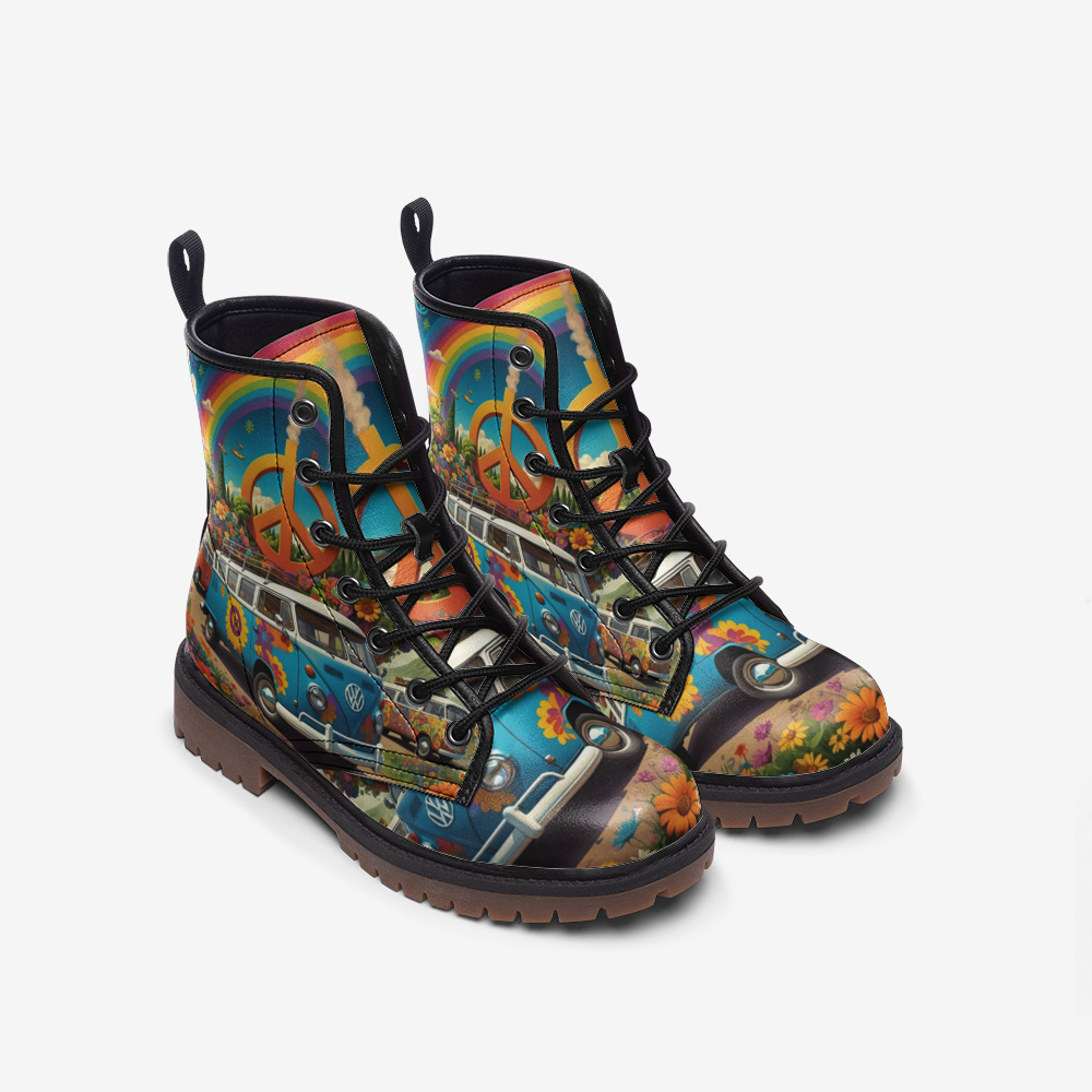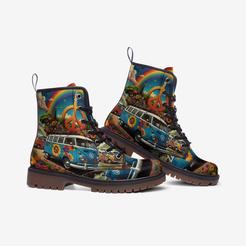 Hit the road in style with the Emerald Blossoms Volkswagen Van to Hippie Destination Casual Leather Boots. Perfect for the adventurous and boho-chic, these boots feature a vibrant graphic of a classic Volkswagen van, symbolizing your journey to carefree destinations. Crafted from premium lightweight leather, they combine durability with exceptional comfort, making them ideal for all-day wear. Celebrate the spirit of adventure and effortless cool with every step you take. Whether you’re exploring new horizons or just enjoying a comfortable ride, these boots are the perfect travel companion.