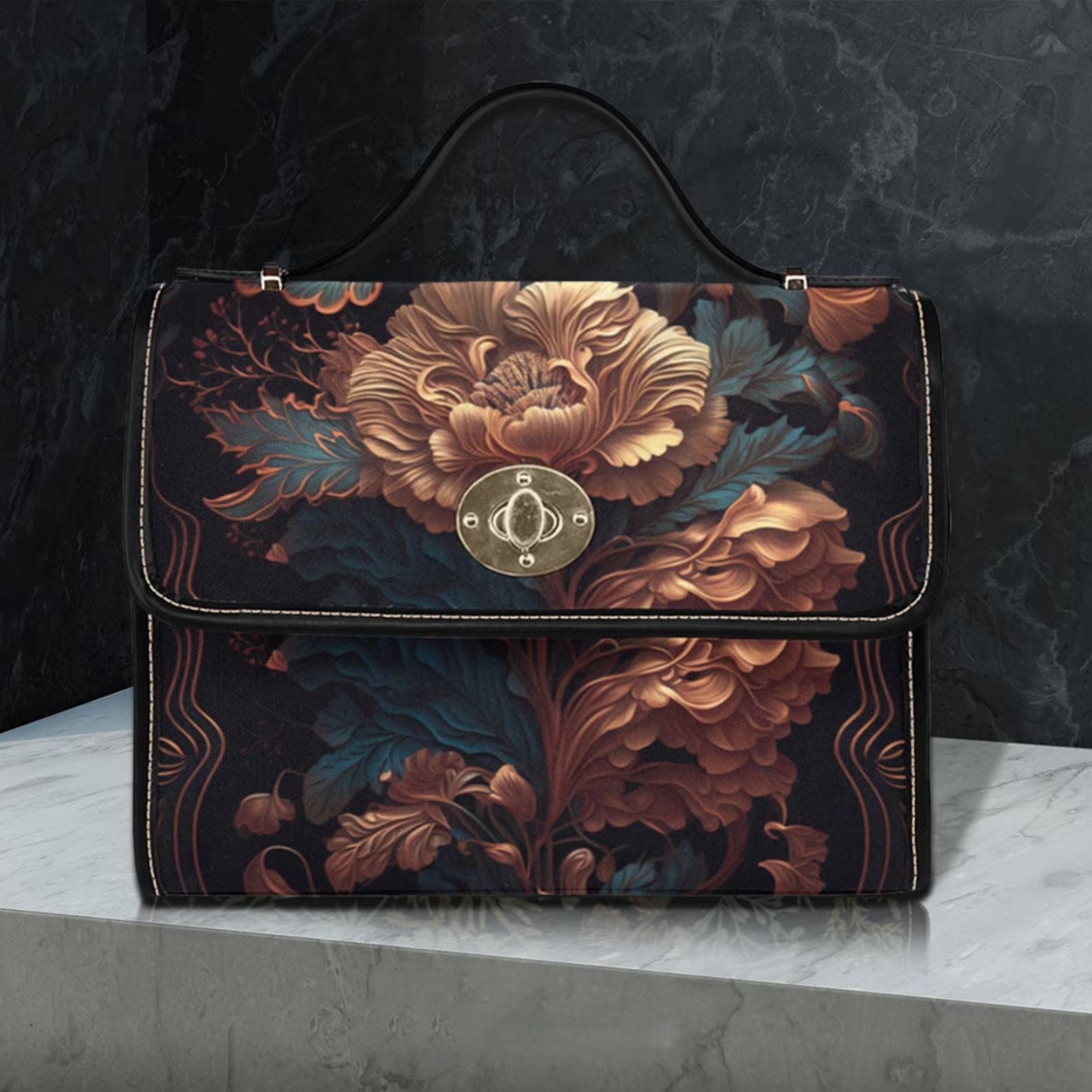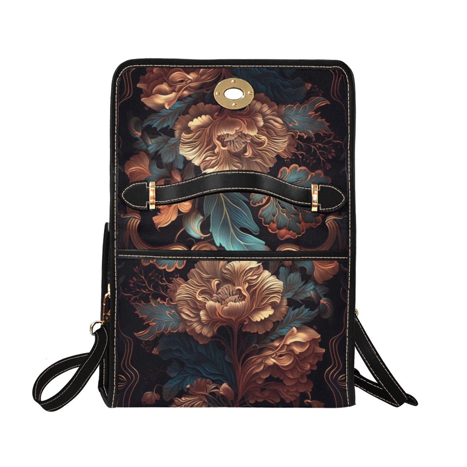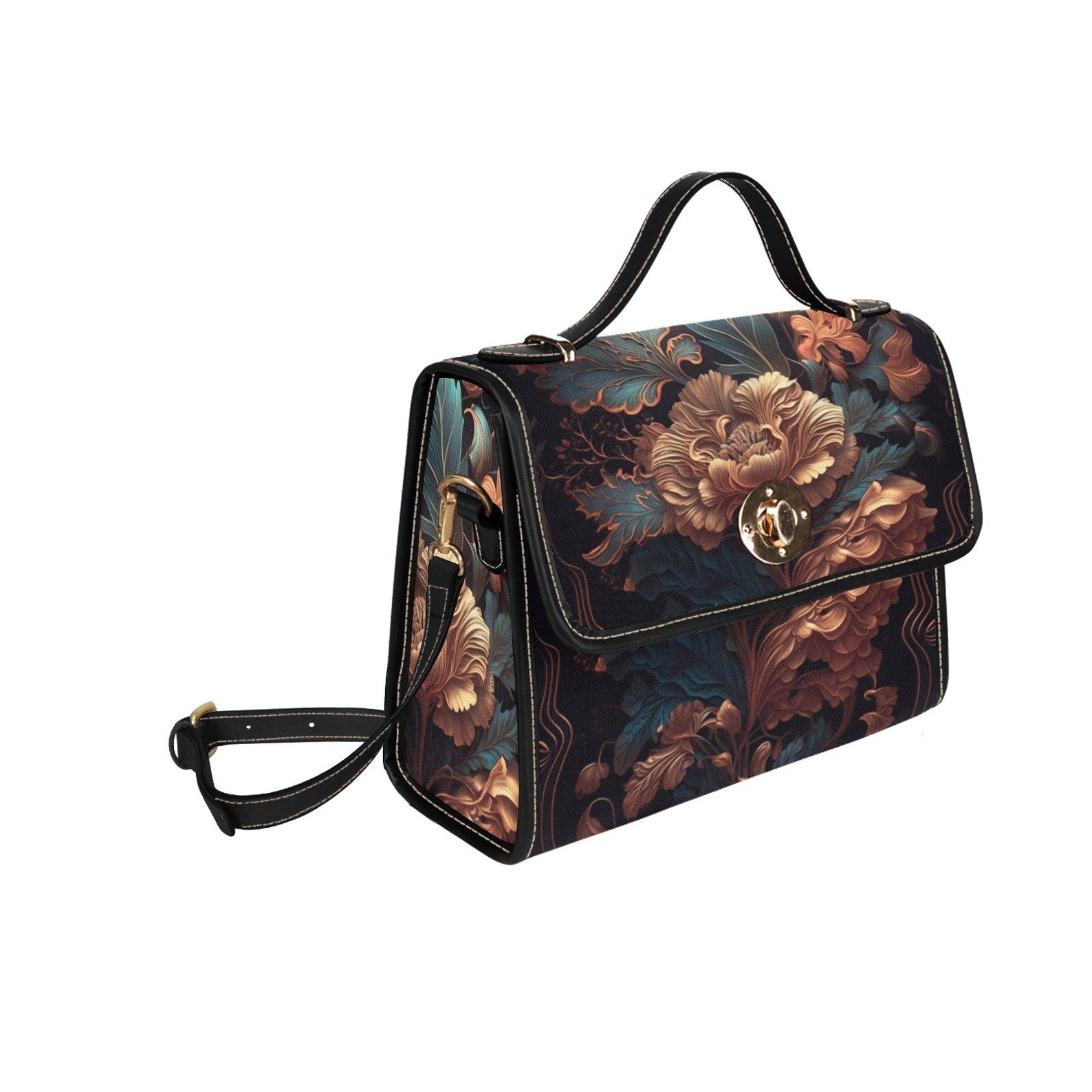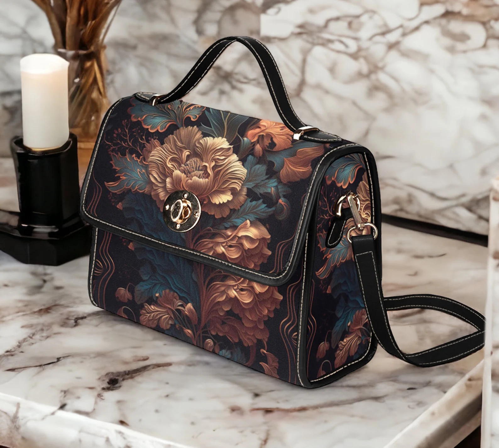 Introducing our Art Nouveau Dark Academia Black Vegan Leather Trim Handbag, a harmonious blend of artistic luxury and scholarly sophistication. Adorned with Art Nouveau-inspired motifs in a soothing color palette, this handbag captures the essence of both the artistic and academic movements. Crafted from high-quality vegan leather with meticulous attention to detail, it combines practicality with aesthetics, perfect for carrying your essentials with classic charm. Ideal for those who appreciate the intricate beauty of Art Nouveau and seek accessories that reflect their intellectual style and artistic sensibility.