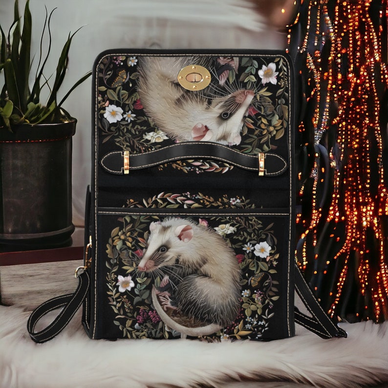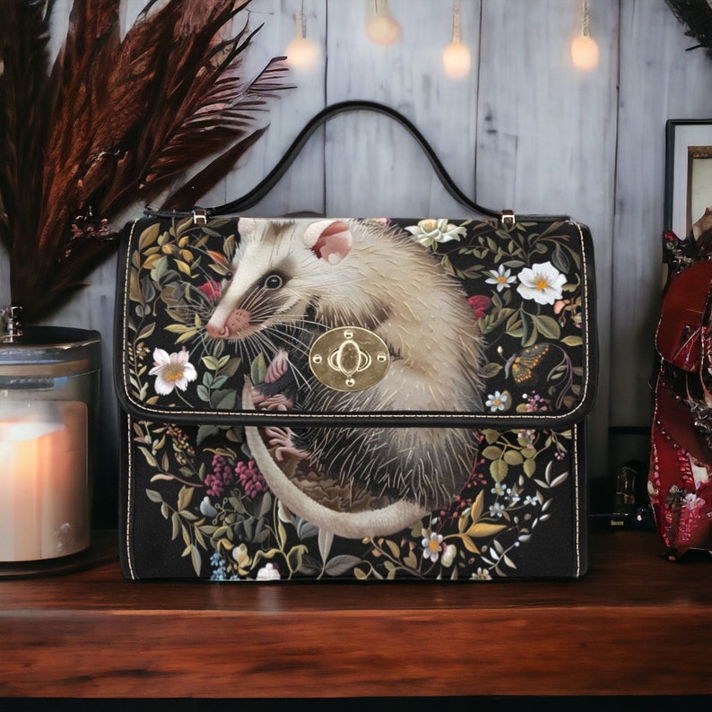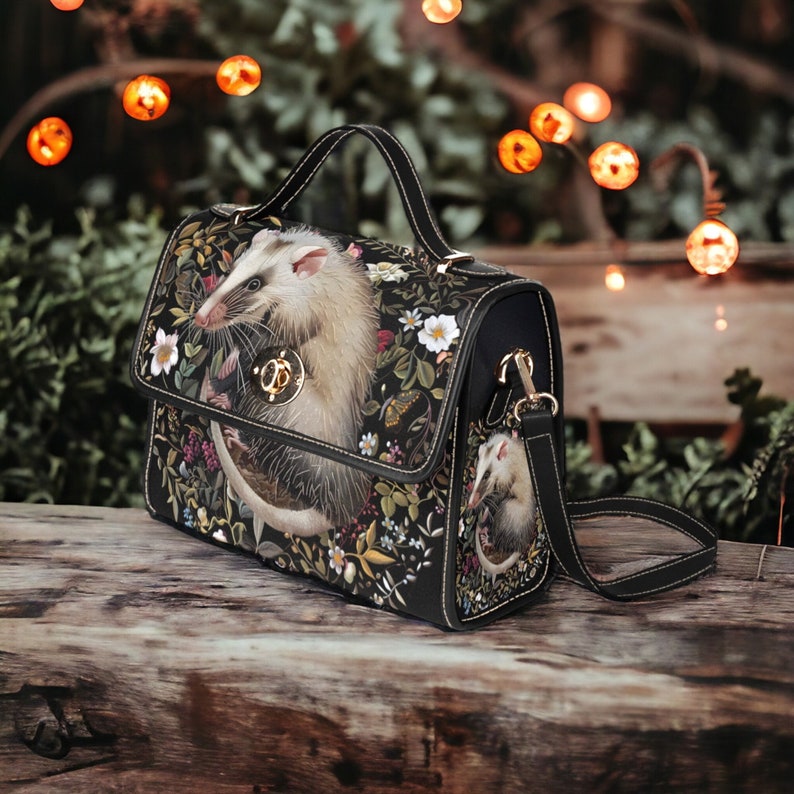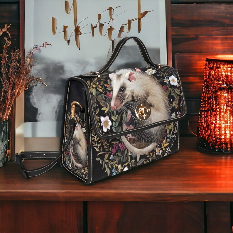 Introducing our Embroidered Opossum & Faux Flower Handbag, a charming and unique accessory that blends natural elements with artistic flair. Adorned with faux embroidered opossum and floral motifs, this handbag captures the essence of woodland charm and rustic elegance. Crafted from durable materials, it combines practicality with unique craftsmanship, perfect for carrying the essentials with a touch of surprise. Ideal for those who appreciate handmade-inspired fashion and seek accessories that reflect their love of creative motifs and designs inspired by nature.