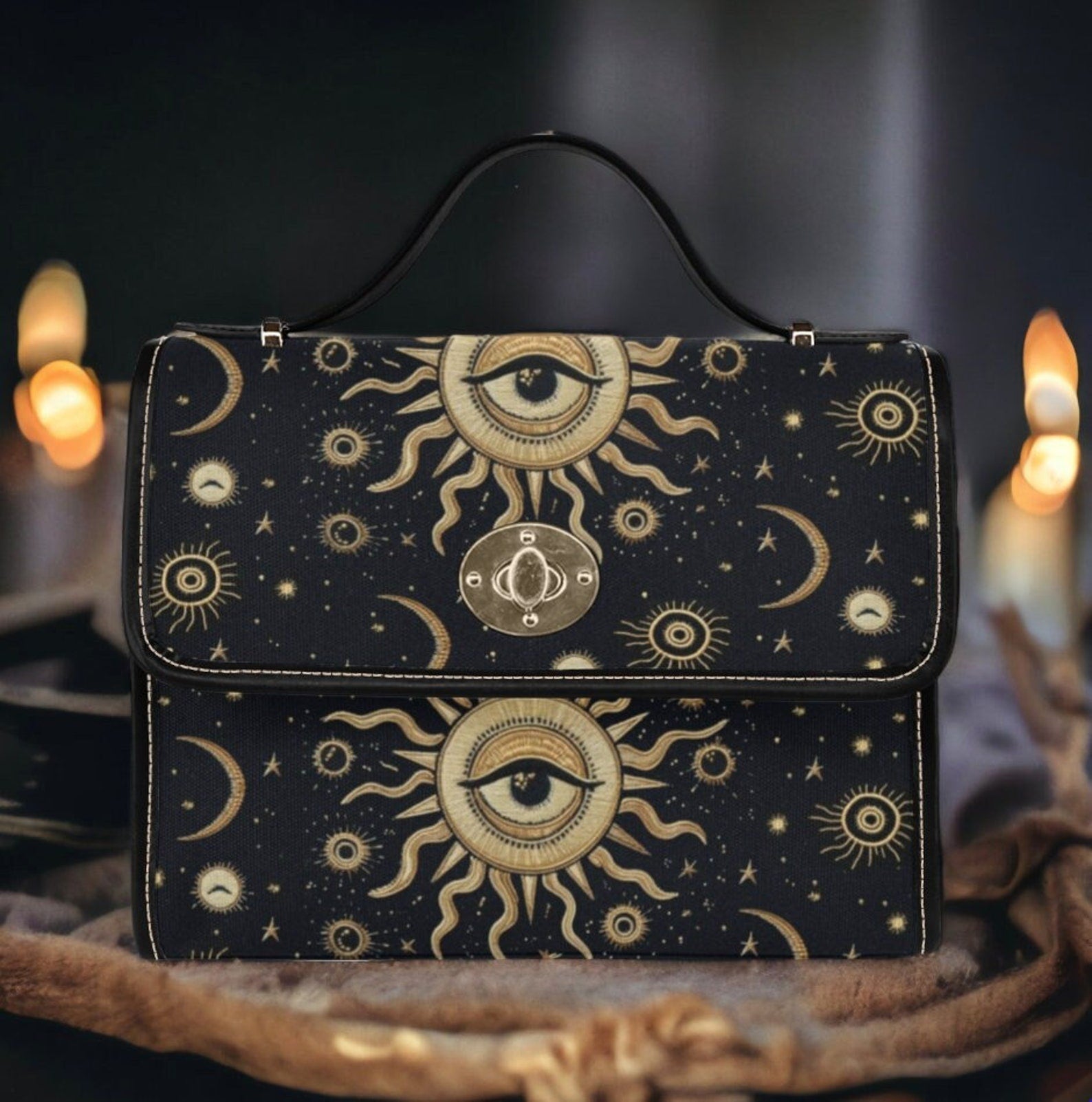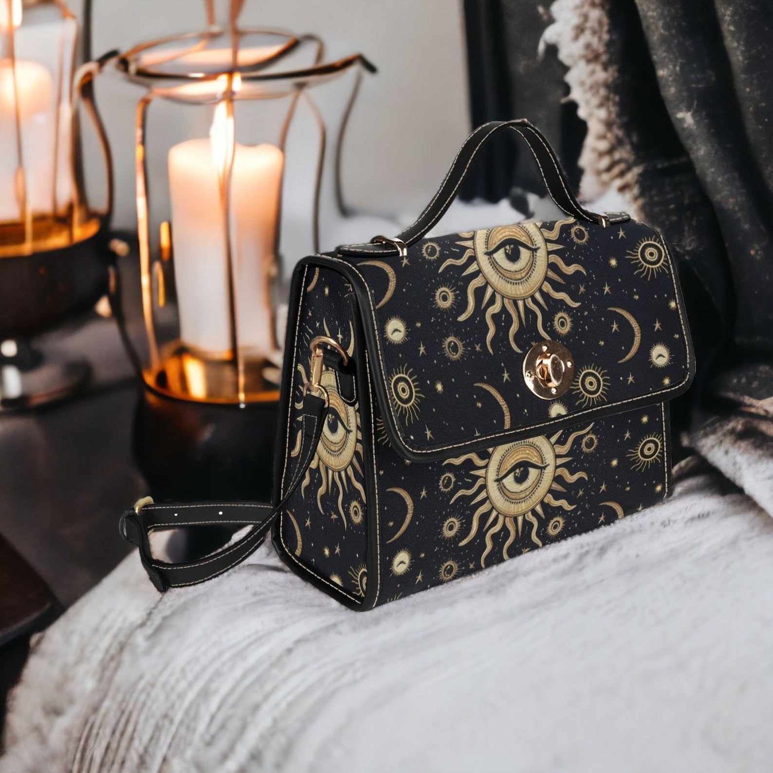 Emerald Blossoms - Goth Chic Eye Sun Moon Stars Crossbody Purse For Hippies