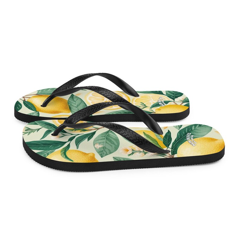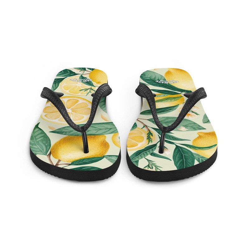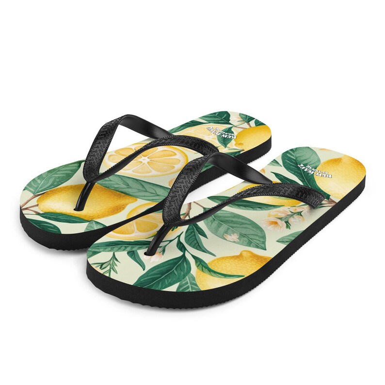 Enjoy the essence of summer with the Emerald Blossoms Summer Lemon Flip-Flops. Bursting with vibrant color and refreshing lemon flavor, these flip-flops embody the spirit of spring. Perfect for adding a touch of playful charm to your sunny day outfits, they combine style with comfort seamlessly. Whether you're heading to the beach, a garden party or simply enjoying a leisurely day outdoors, these flip-flops are your go-to for effortlessly chic style. Welcome the season with every step in the Emerald Blossoms Summer Lemon Flip-Flops.
