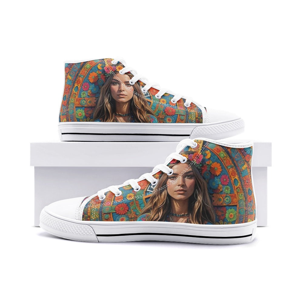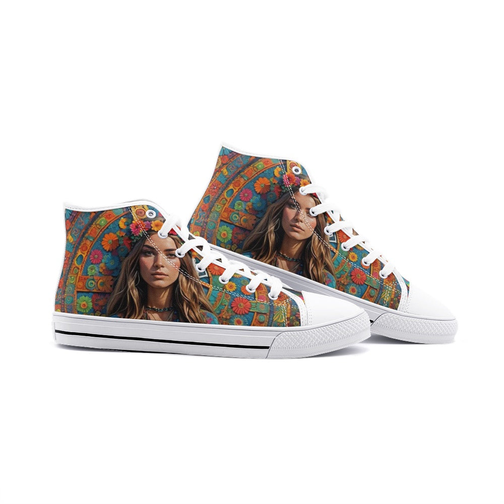 Emerald Blossoms - Bohemian Woman, Chic Style Unisex High Top Canvas Shoes For Hippies