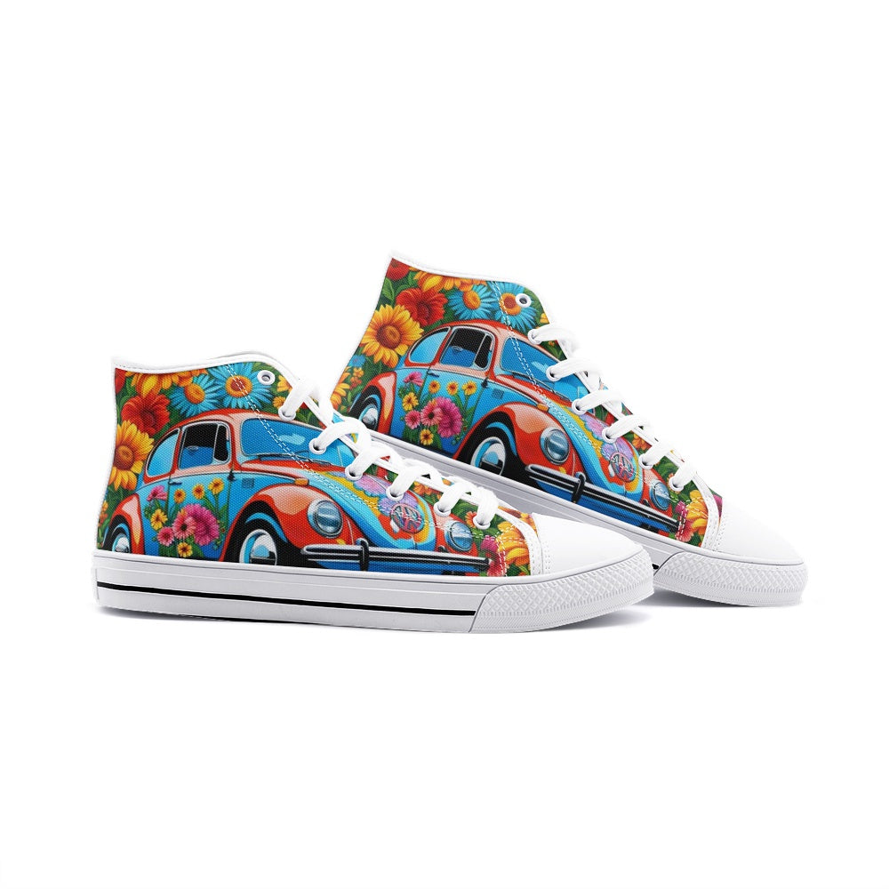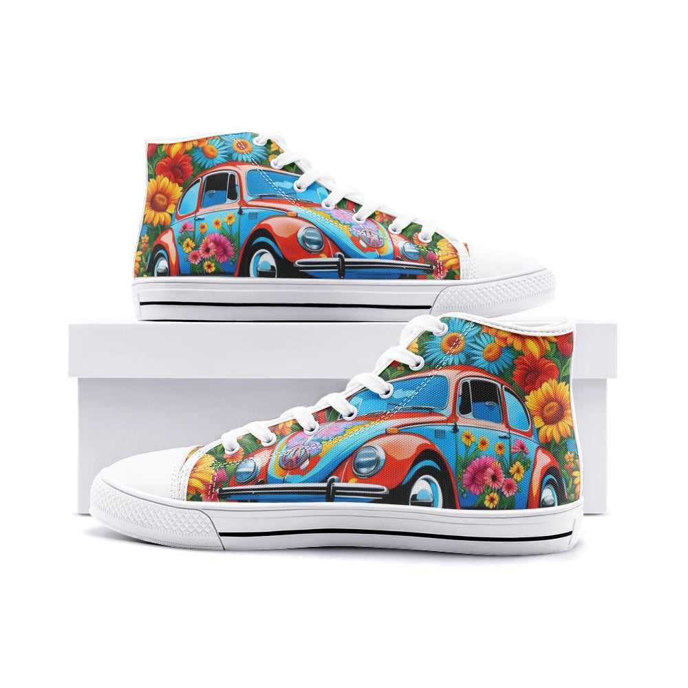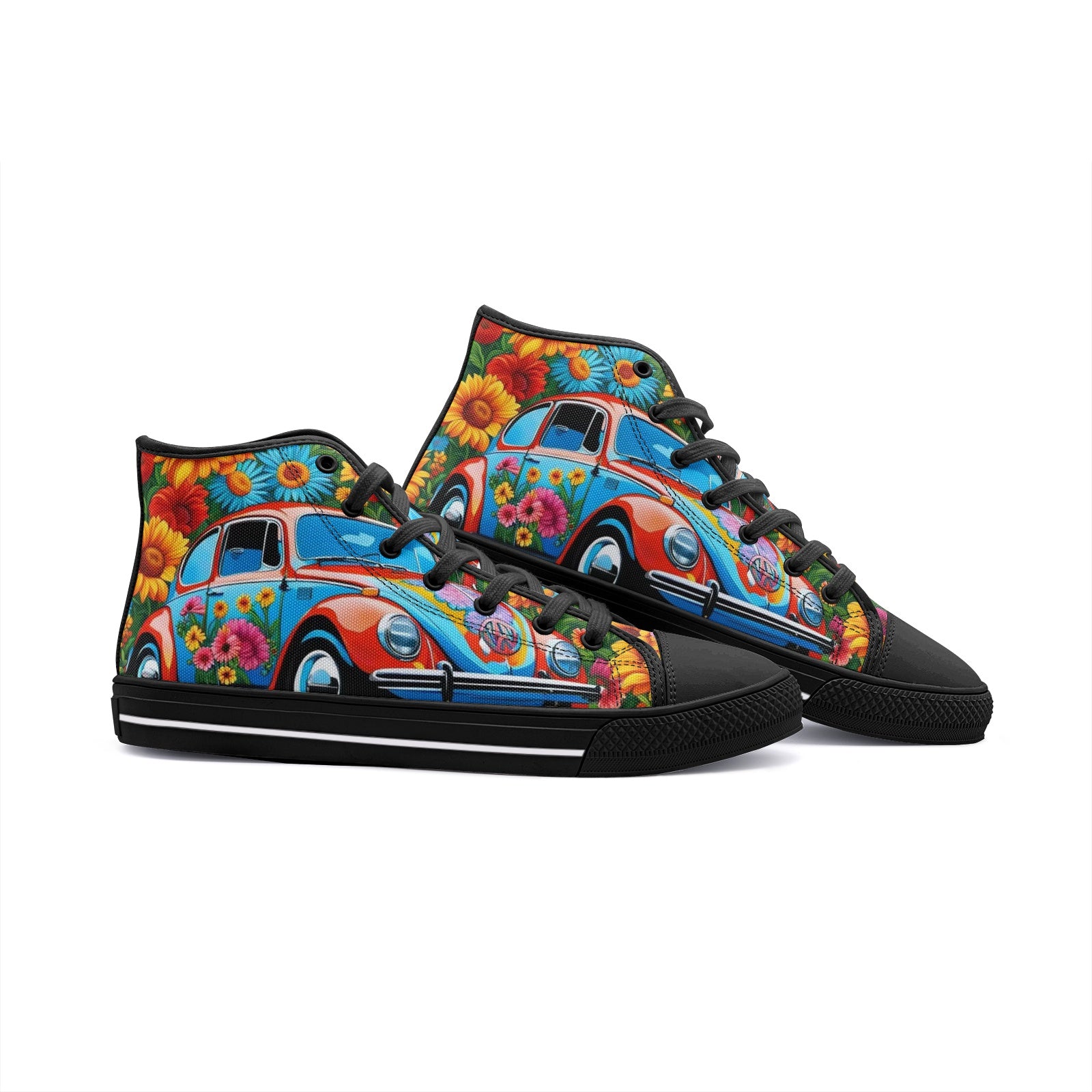 Emerald Blossoms - Floral Volkswagen Beetle, Hippie Getaways Unisex High Top Canvas Shoes For Hippies