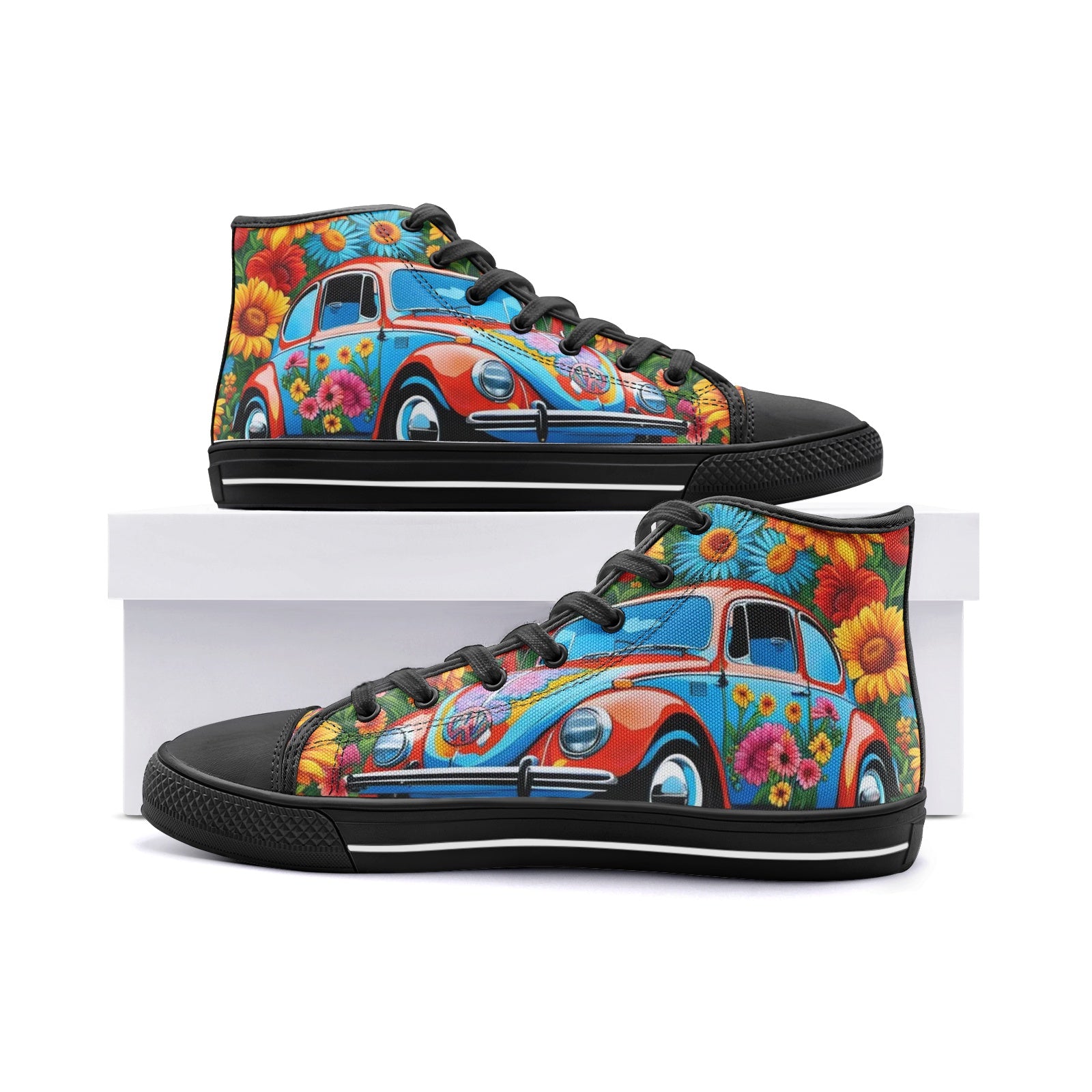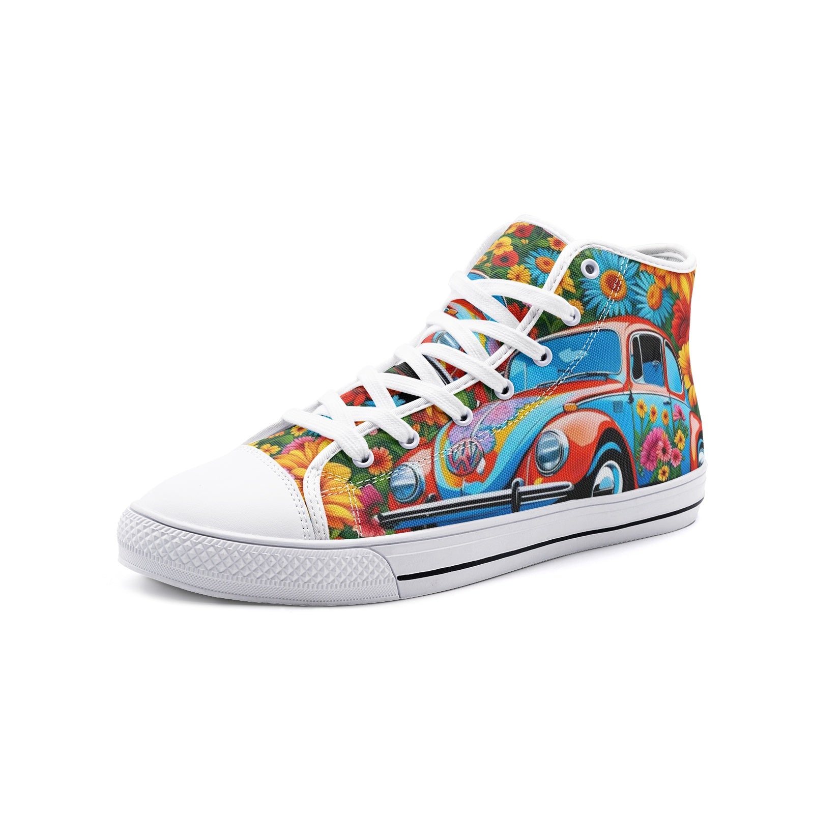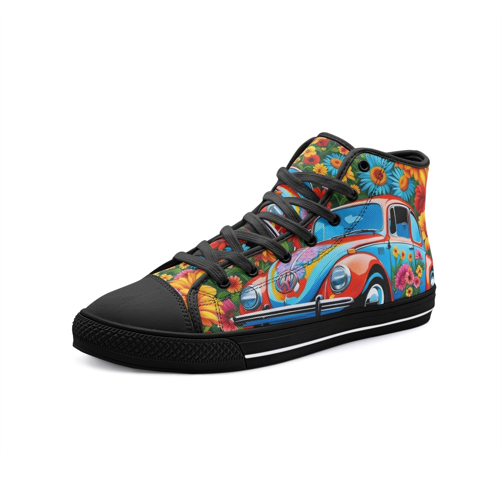 Emerald Blossoms - Floral Volkswagen Beetle, Hippie Getaways Unisex High Top Canvas Shoes For Hippies