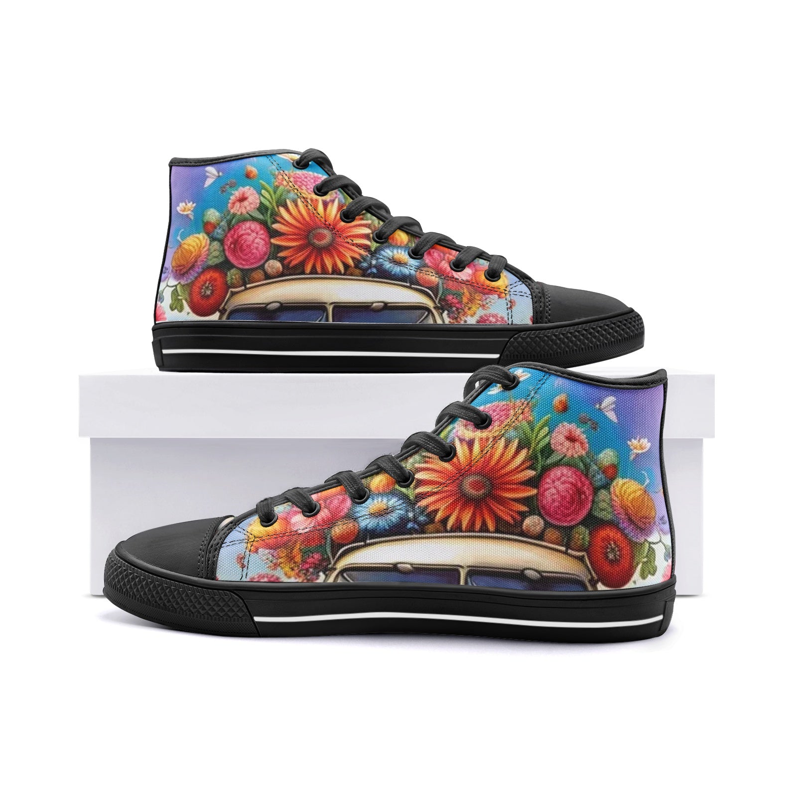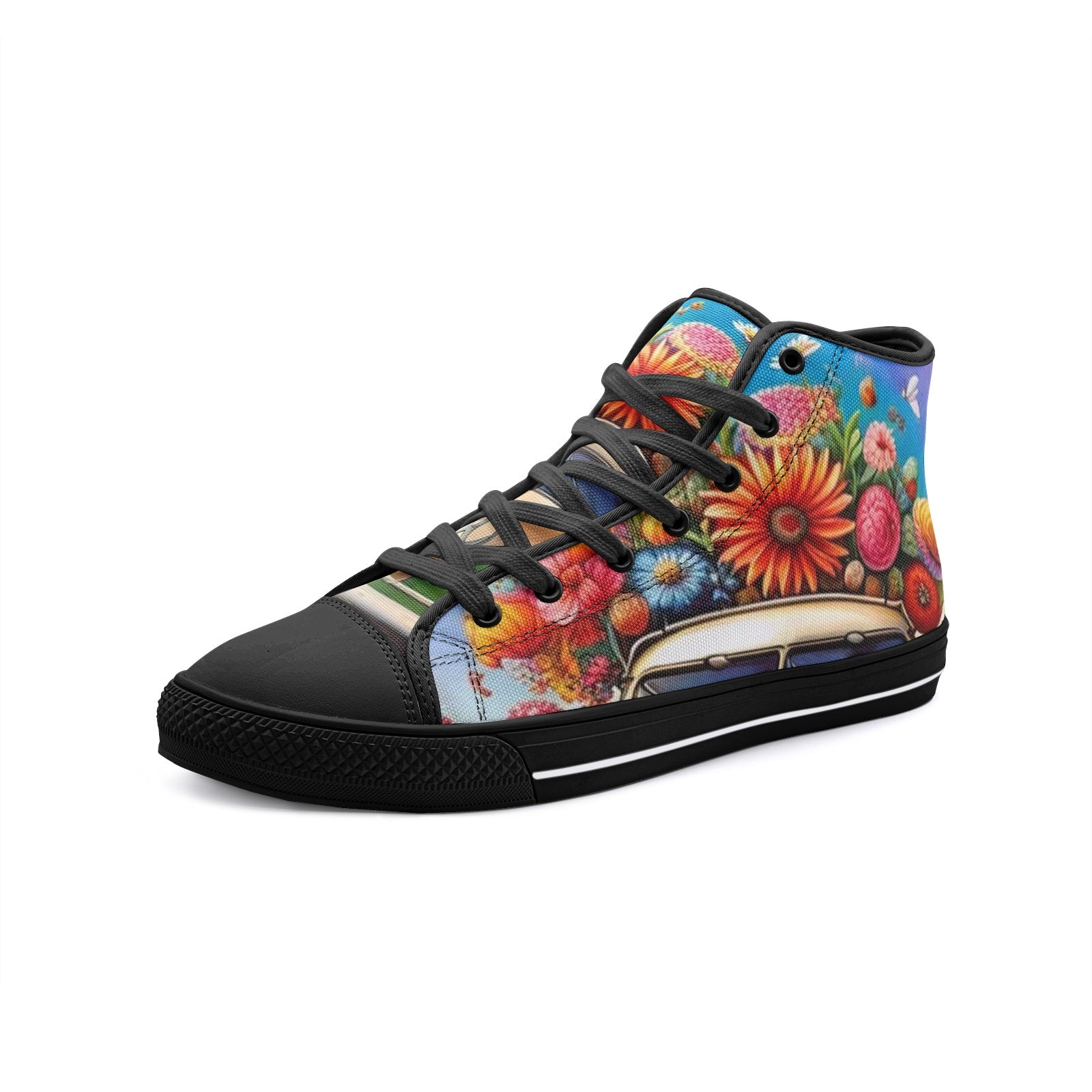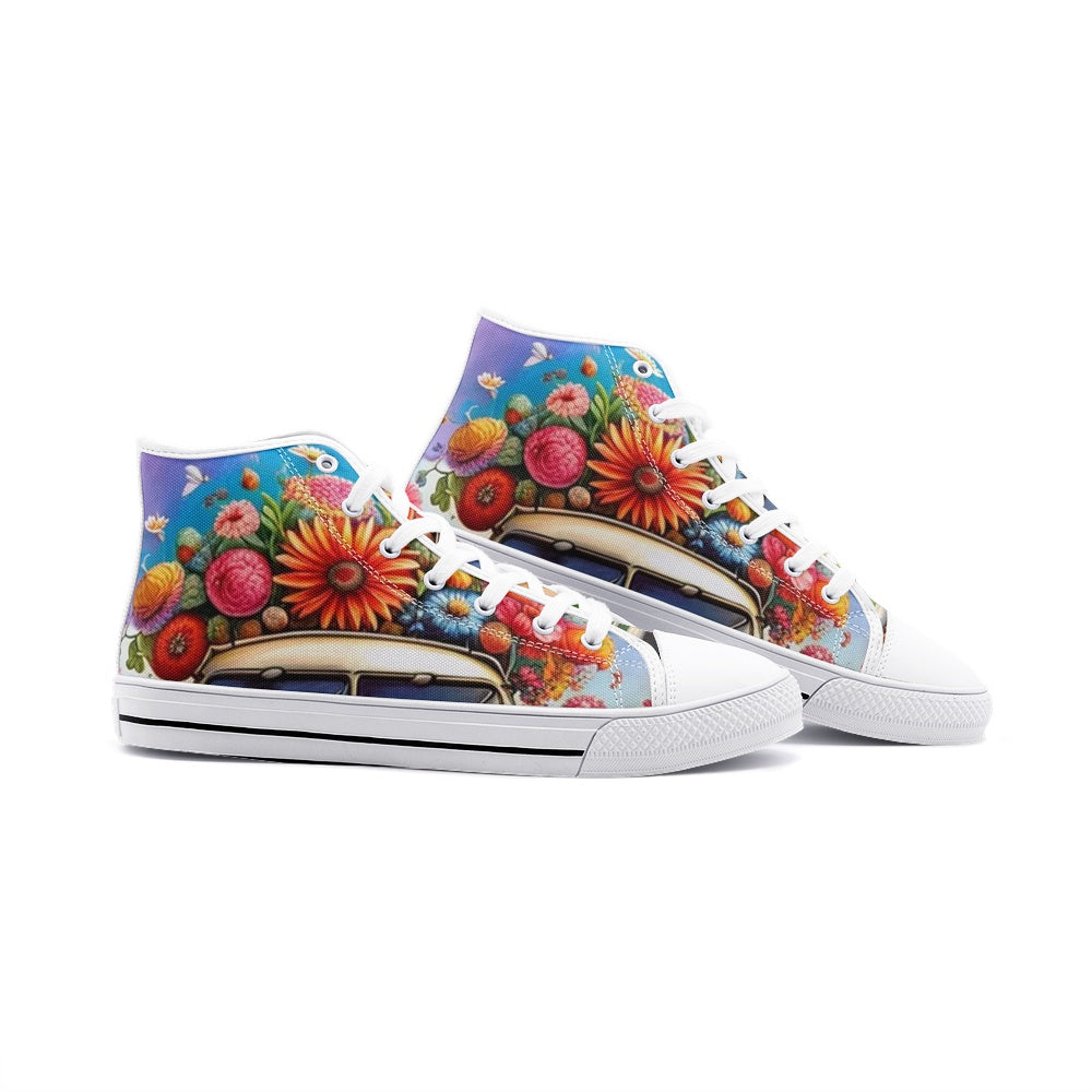 Emerald Blossoms - Flower Garden, Ride Along Nature Unisex High Top Canvas Shoes Boots For Hippies